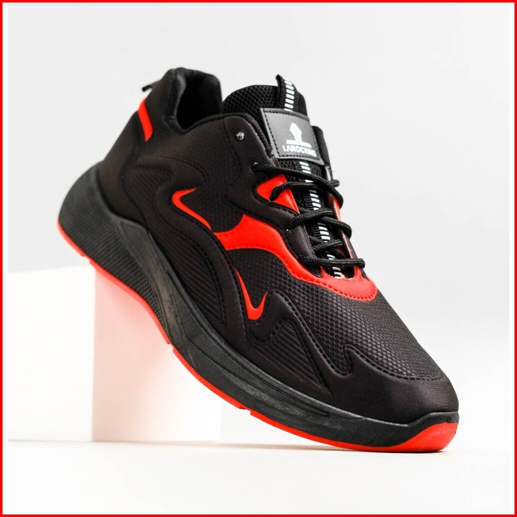 Larocking - Artemis Hitam Merah Sepatu Sneakers Running Gym Shoes