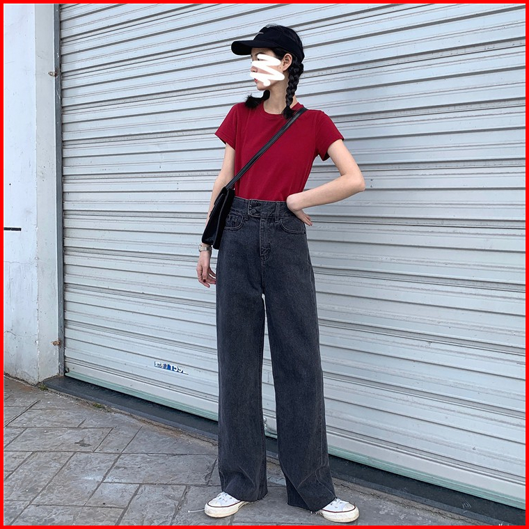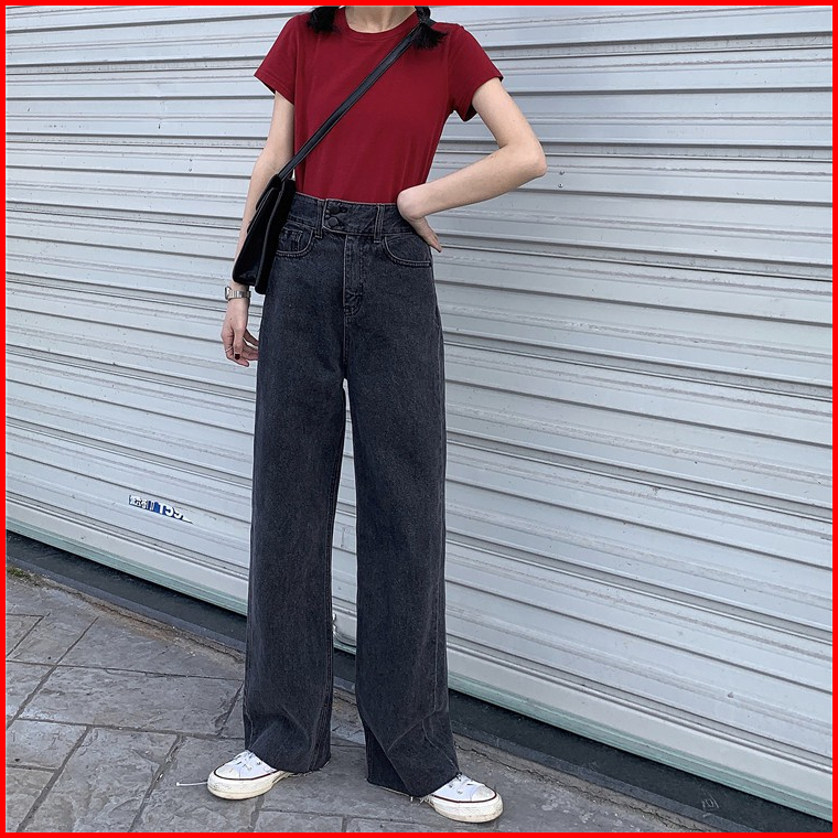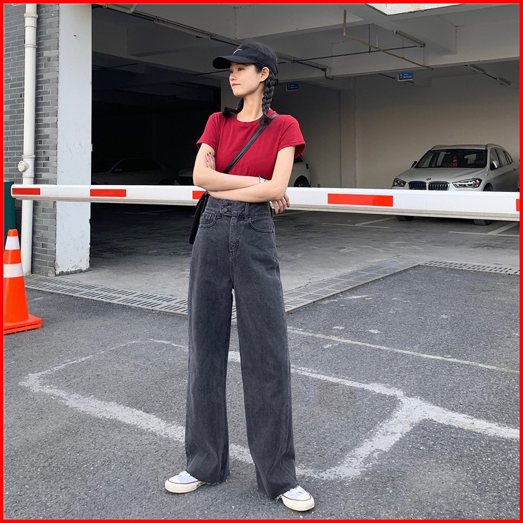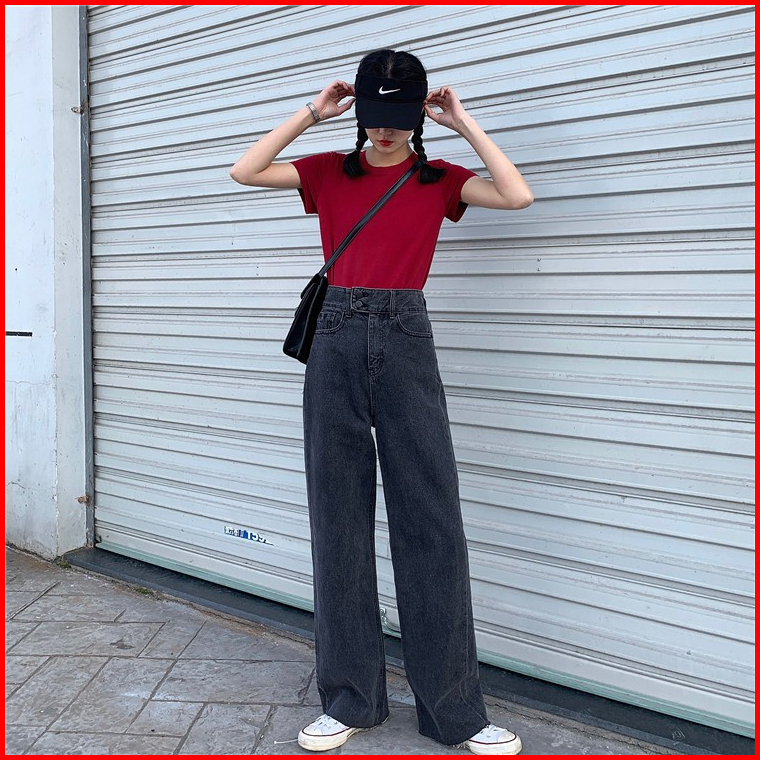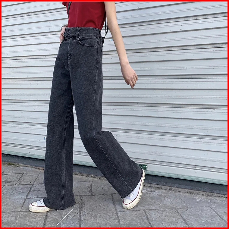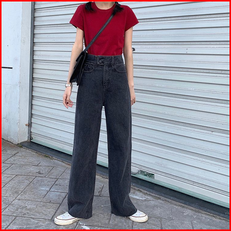 Korea Style Celana Jeans Wanita High Waist Celana Panjang Loose Jeans