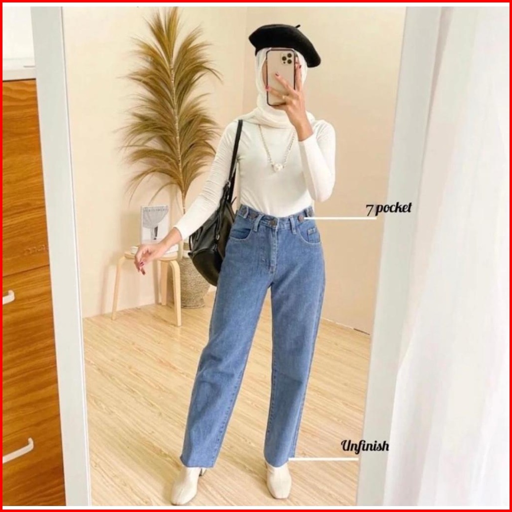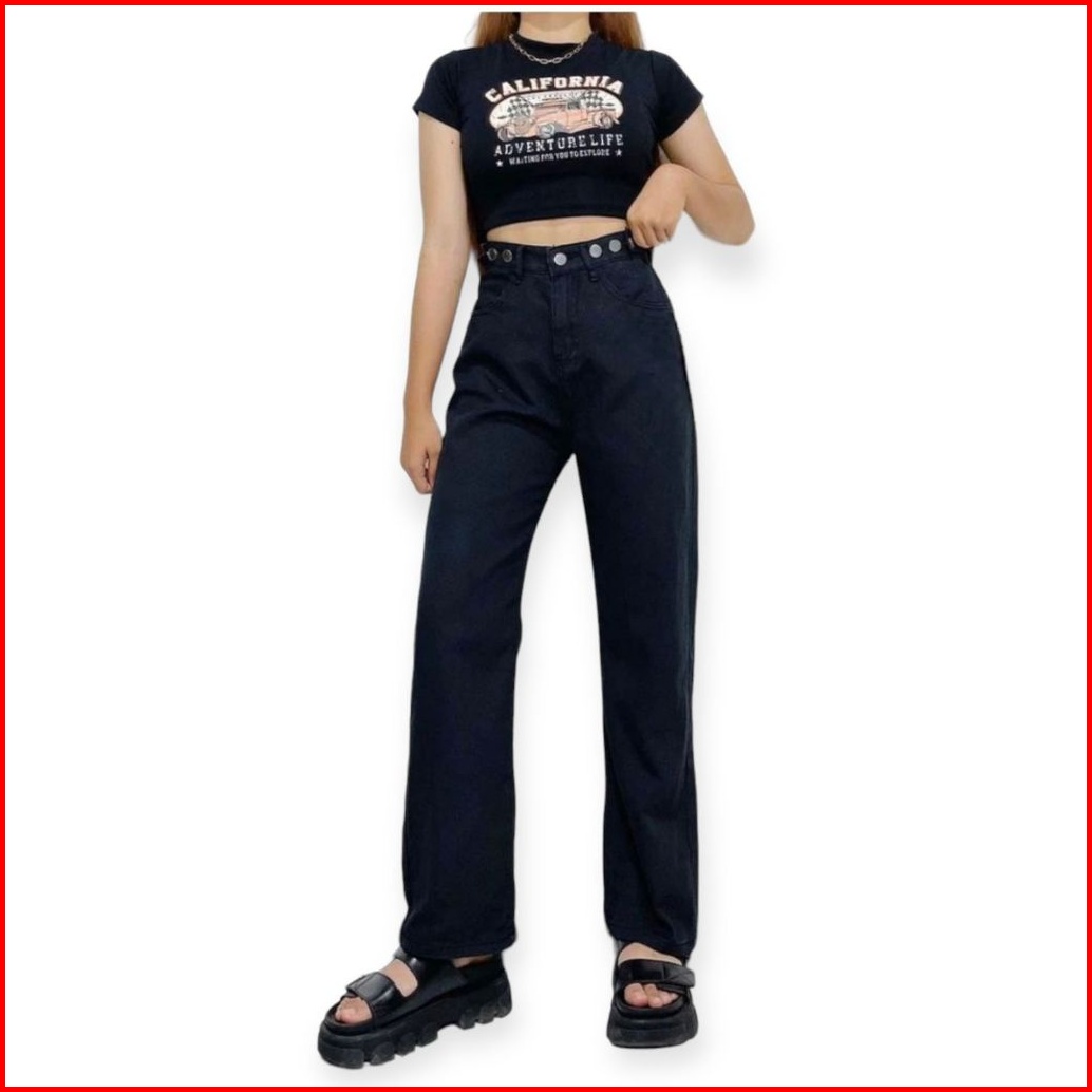 Hw Jeans - Celana Jeans Wanita Highwaist Kulot Jeans Pinggang Yang Dapat Diisesuaikan