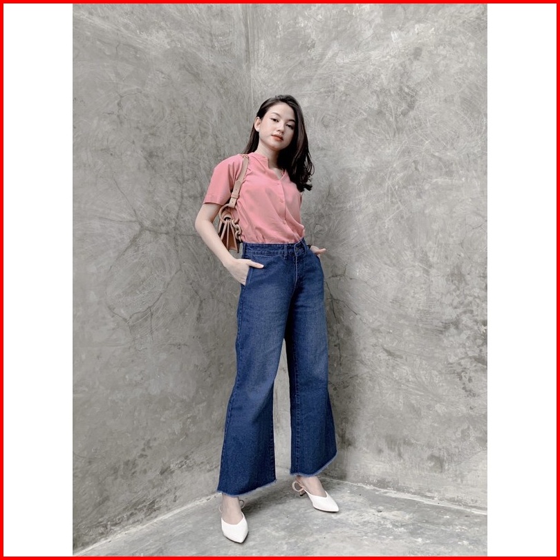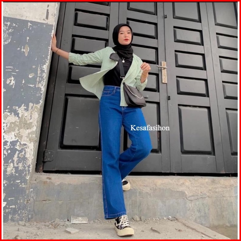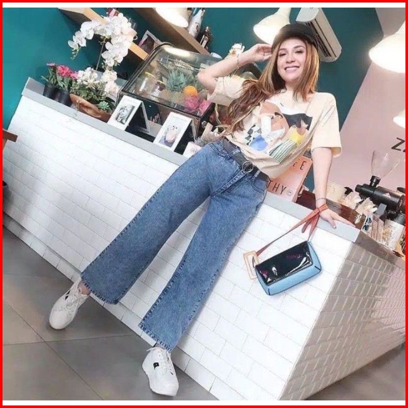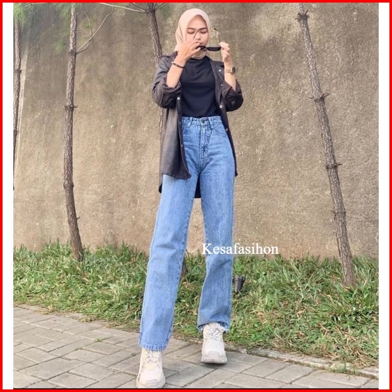 Highwaist Loose Jeans Kulot Jeans Wanita