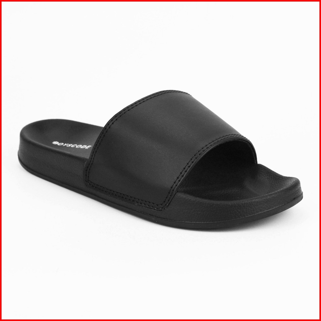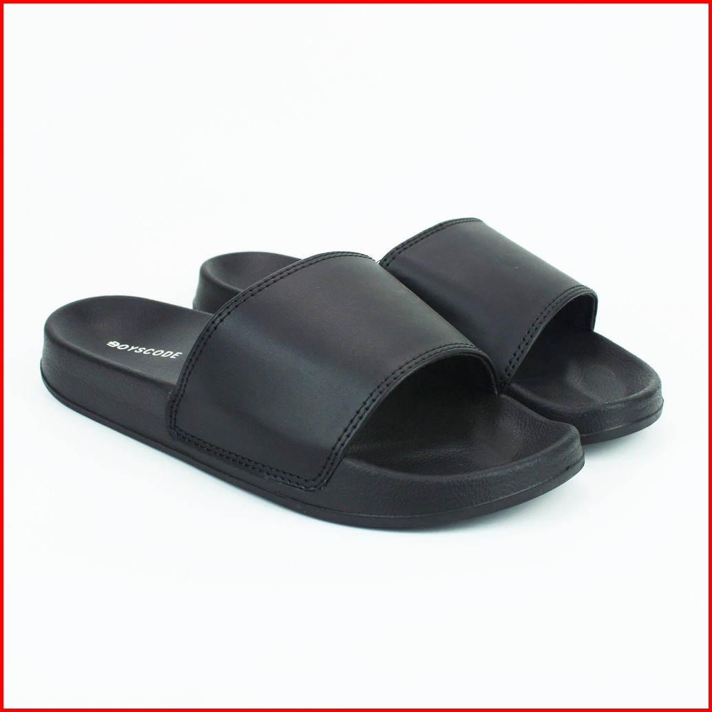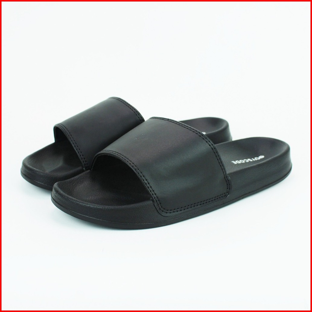 Sendal Selop Distro Pria Wanita Hitam Fullblack Polos Sendal Slide Polosan Sendal Slip On Sendal Slop