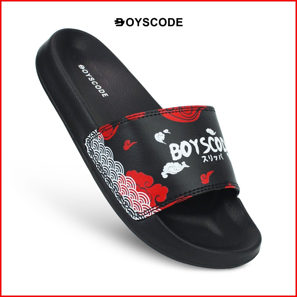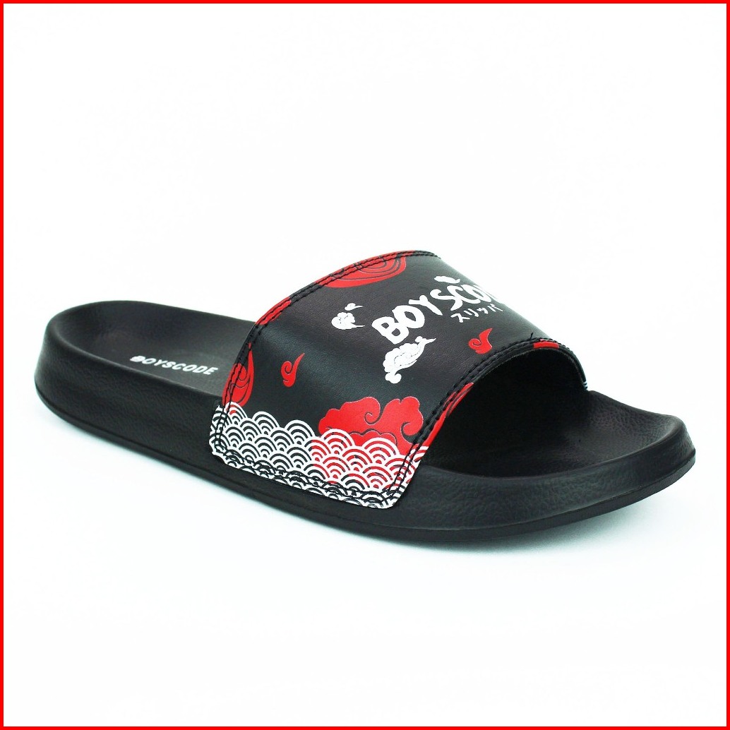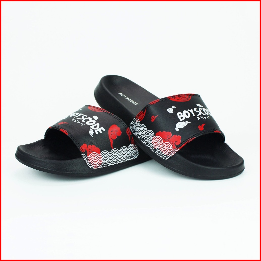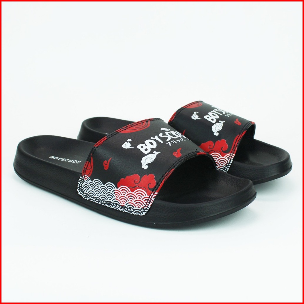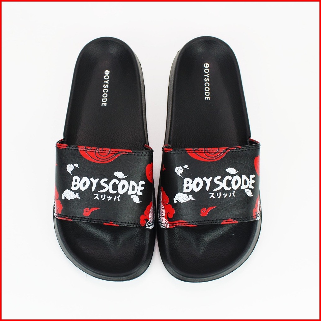Sandal Selop Distro Pria Wanita Original Boyscode Akatsuki Cloud Hitam Merah Sandal Slop Pria Sandal Slide Pria