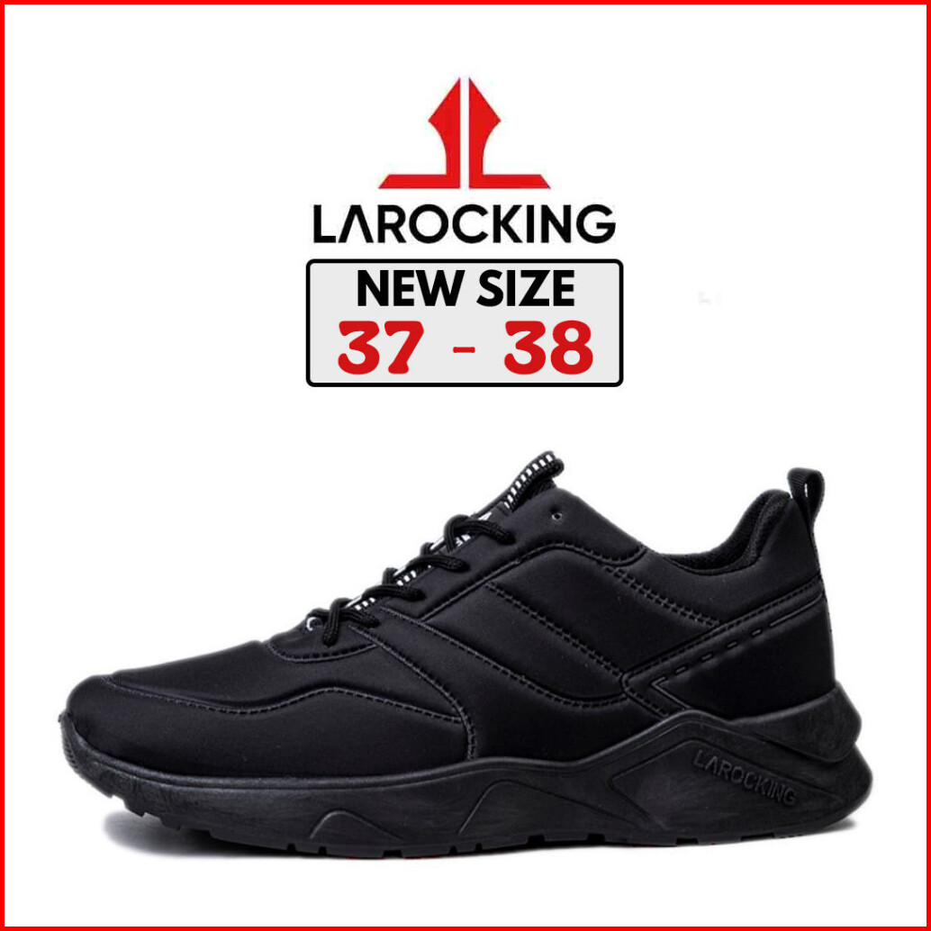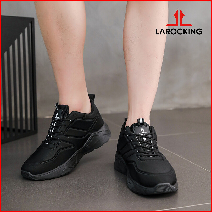 Larocking - Dexter Hitam Polos Sepatu Sneakers Running Gym Shoes Sport