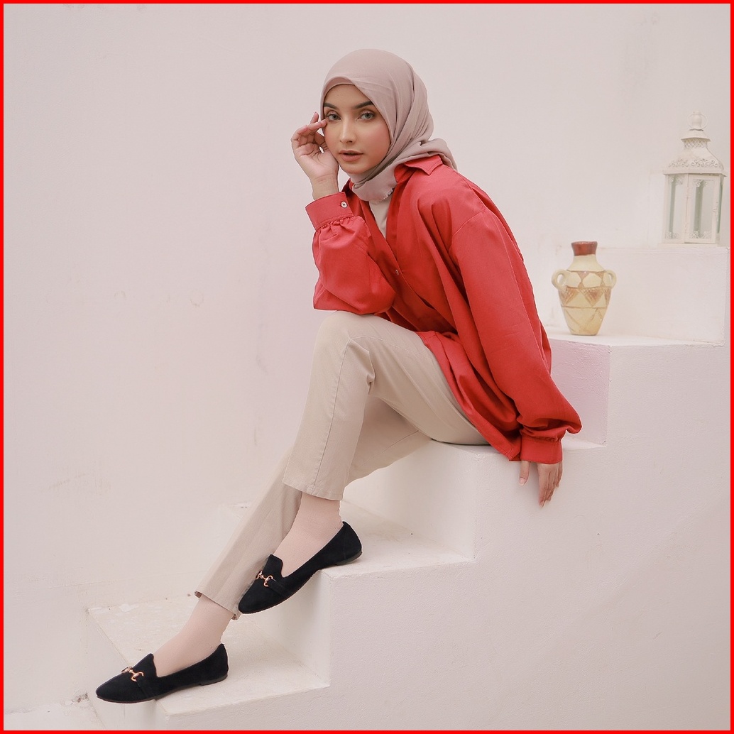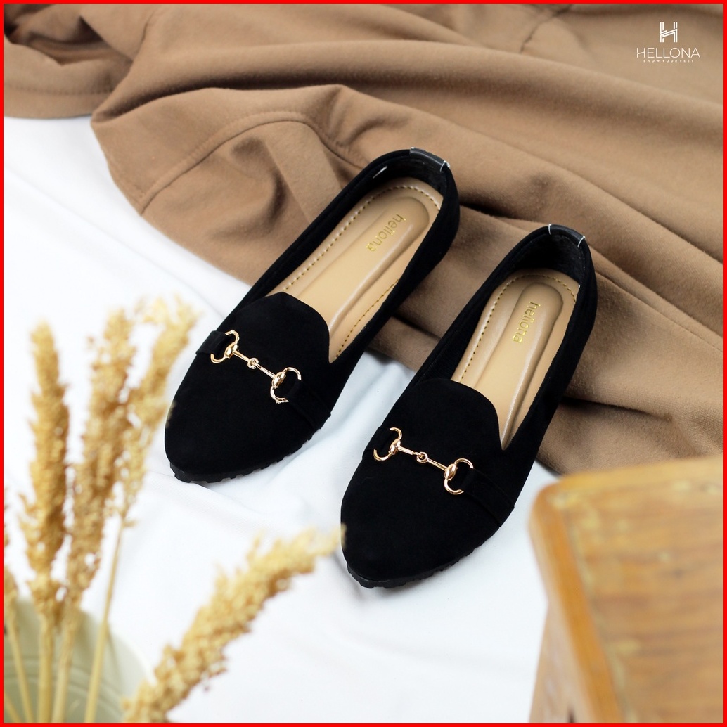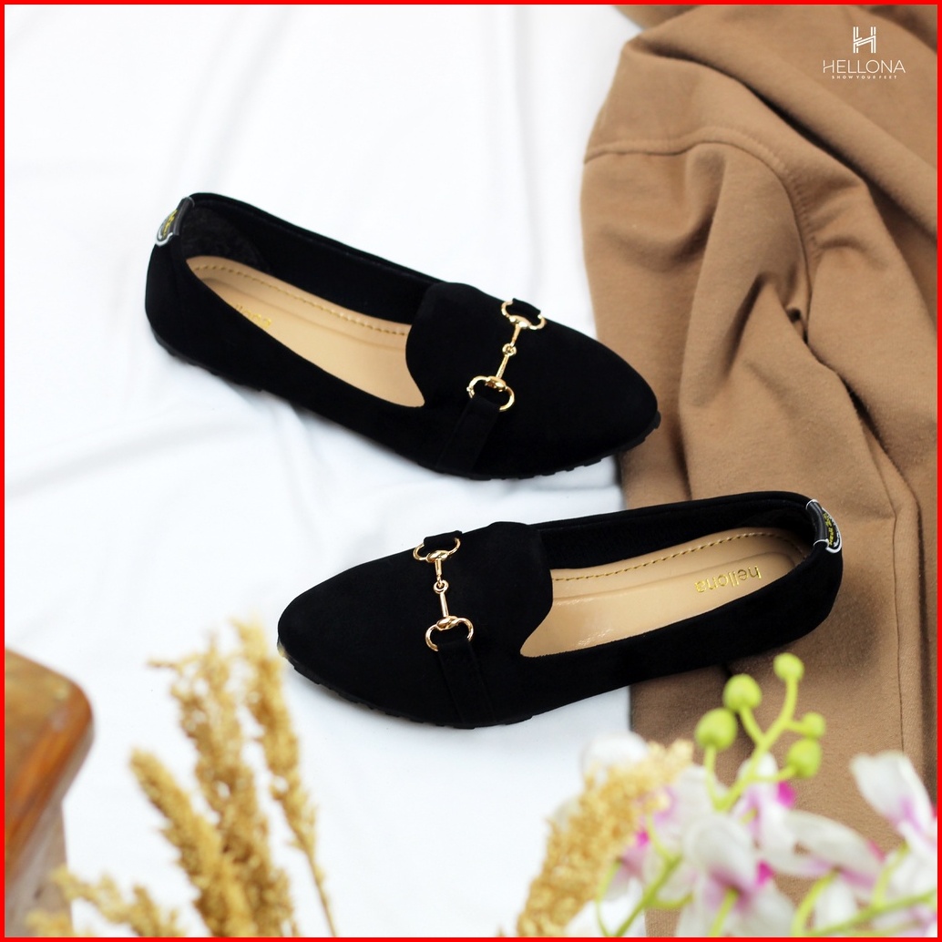 Hellona Ayana Flatshoes Wanita Desain Simpel Warna Black
