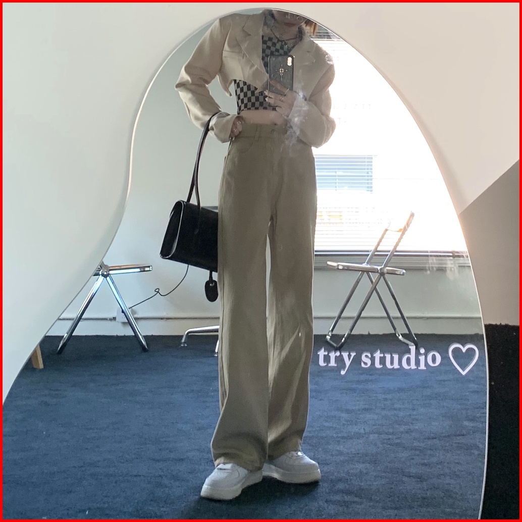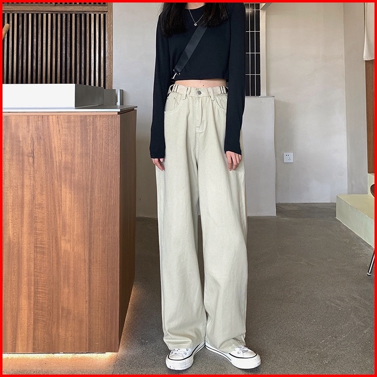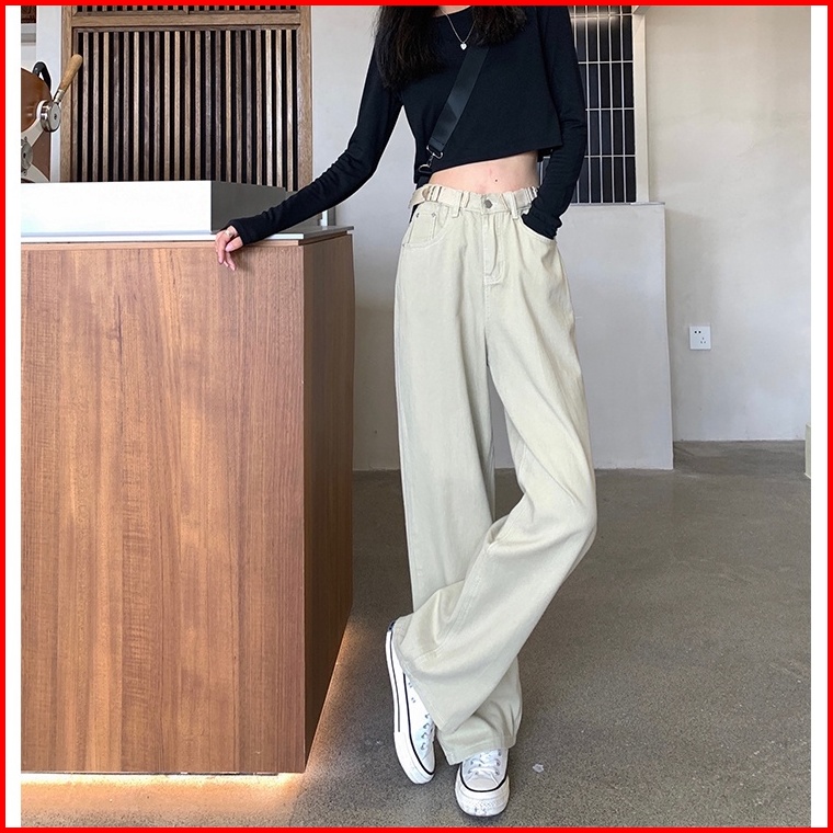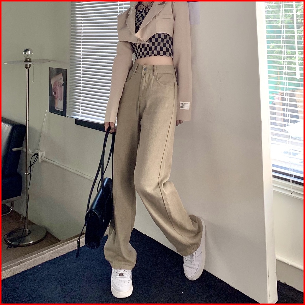Jeans Wanita High Waist Korea Style Fashion Celana Panjang Khaki Minimalis Loose Jens