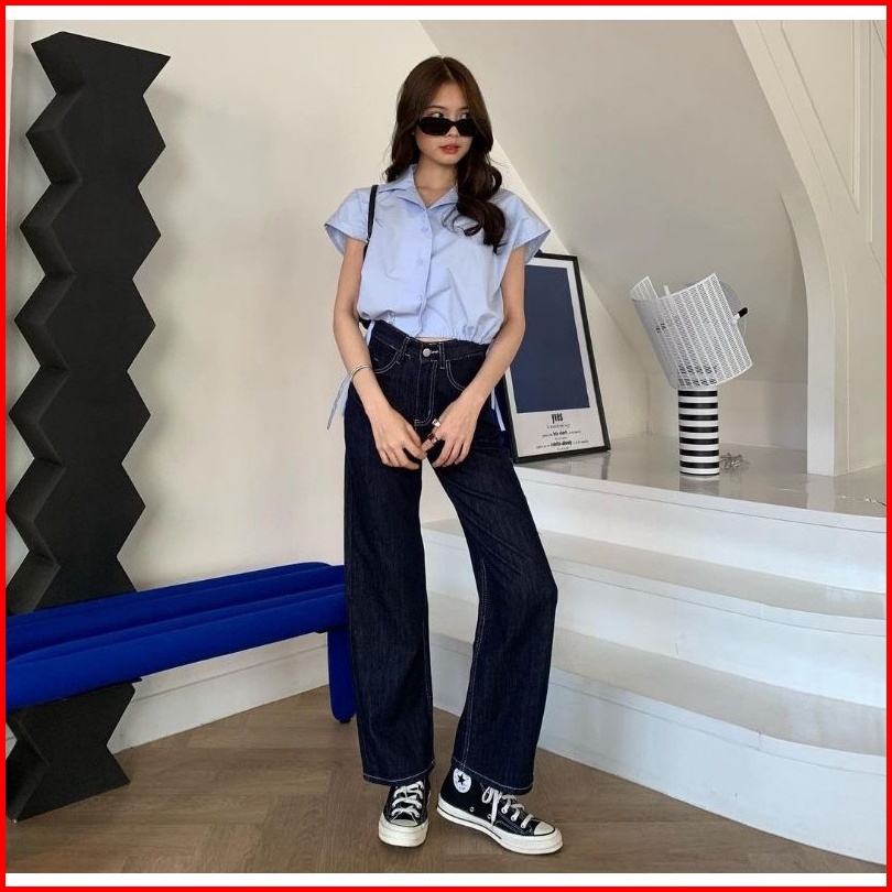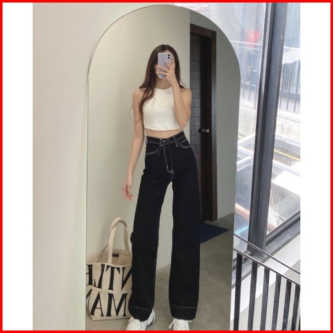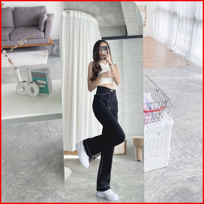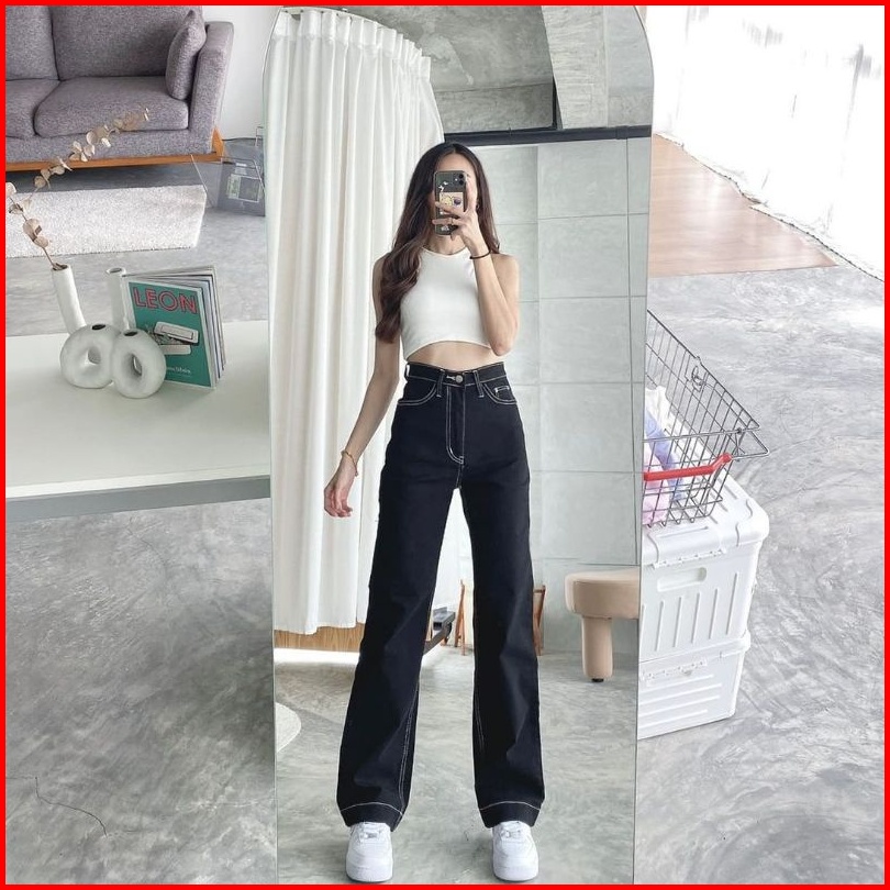 27-34 Hitam List Cream Hw Loose Jeans Black List White Hw Loose Jeans Celana Highwaist Loose Jeans Wanita Cewek