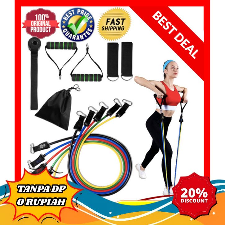 [Mall] RESISTANCE BAND 11 IN 1 FITNESS GYM STRETCHING BAND- Karet Olahraga Home Work Out Yoga / Pilates