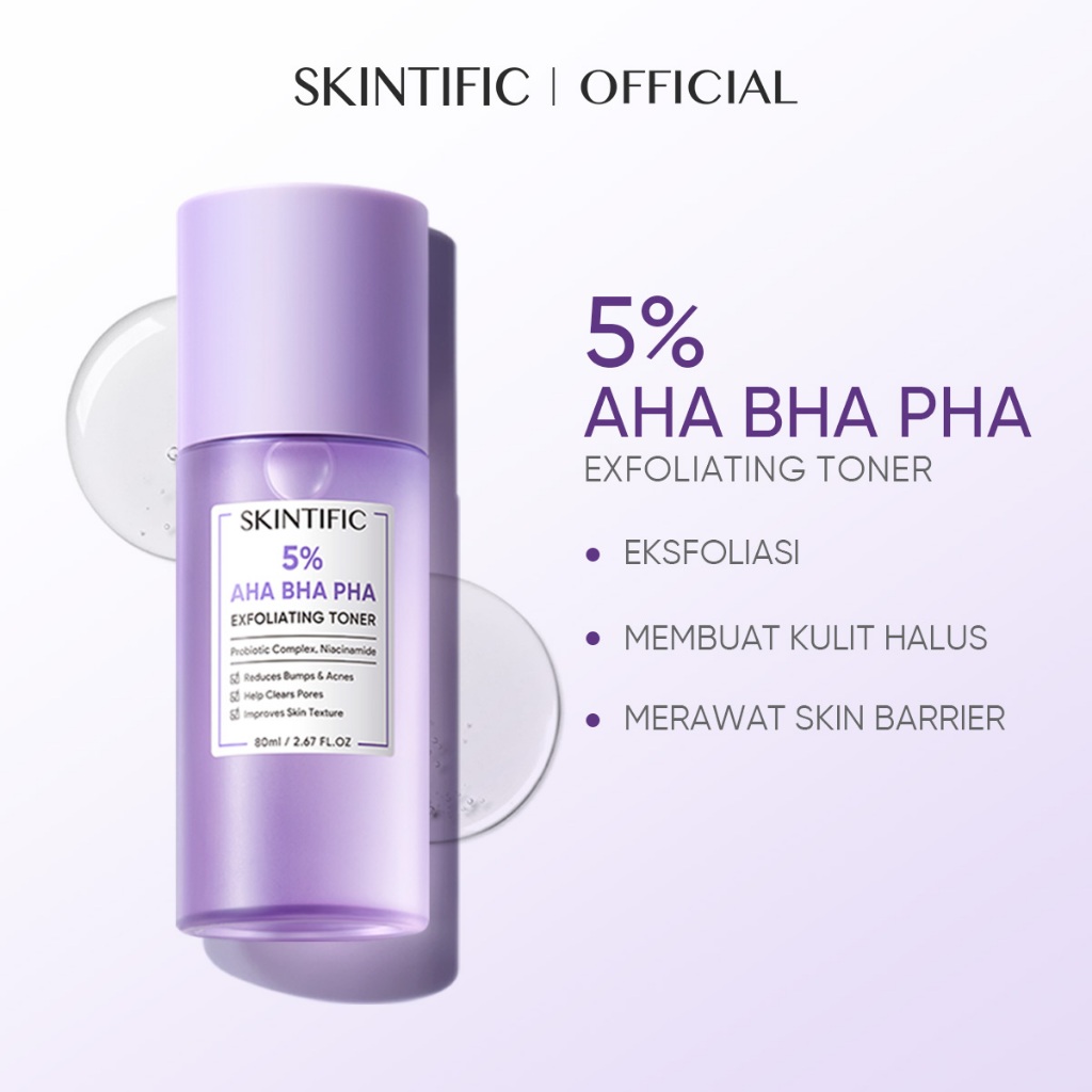 SKINTIFIC - Exfoliating Brightening Toner 80ml | Toner Eksfoliasi Wajah AHA BHA PHA Exfoliating