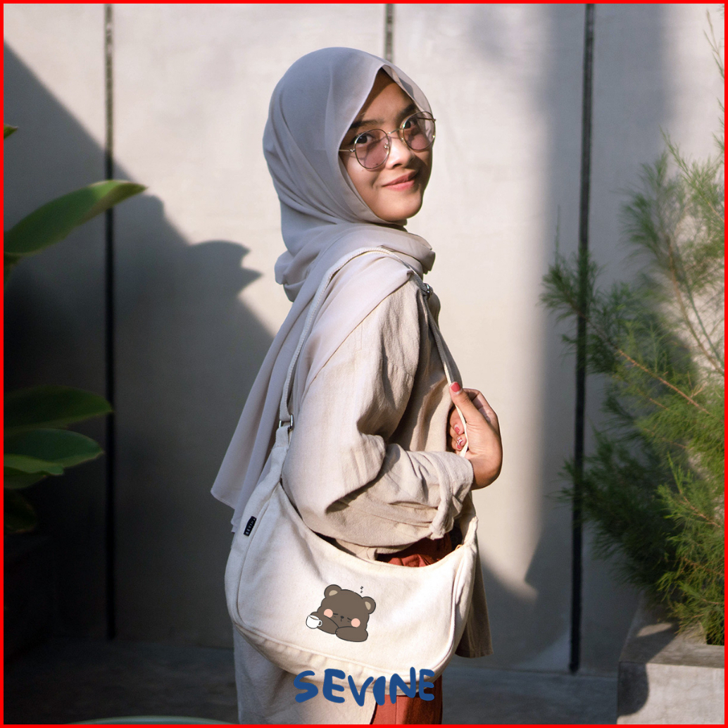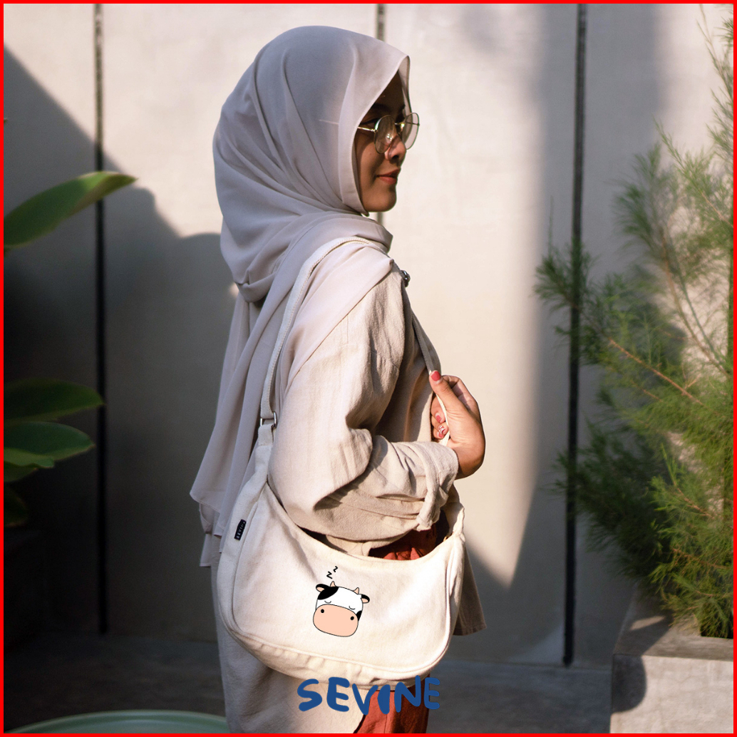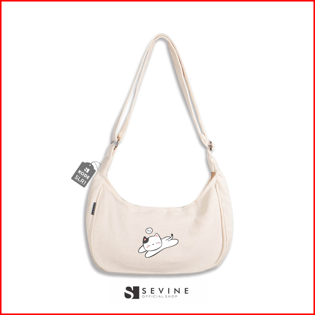 Sevine Luna Sling Bag Tas Selempang Wanita Tas Wanita Kuliah Kanvas Resleting Shoulder Bag Hand Bag - Slr
