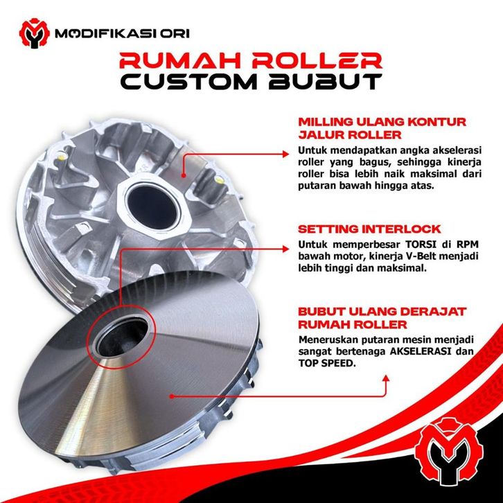 SET PULLY VARIO 125/150 OLD LED NEW BUBUT + KEROK JALUR PART ORIGINAL PULI POLLY PULLEY KODE (KZR) RUMAH ROLLER