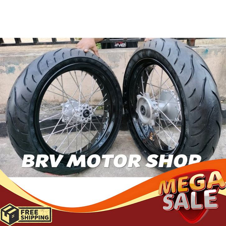 Velg SuperMoto Crf150L Super Moto Crf Tromol Ori 300+350-17 Hitam Glos Full Set Ban