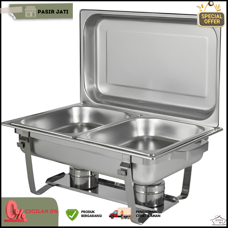 CHAFING DISH 2 SEKAT 12 LITER TEBAL TEMPAT PEMANAS MAKANAN 1TRAY 2TRAY TEMPAT PRASMANAN JUMBO 2 API WADAH SAJI MAKANAN 1