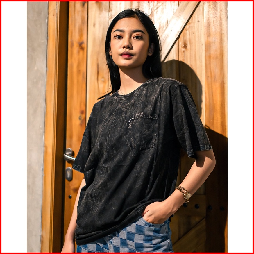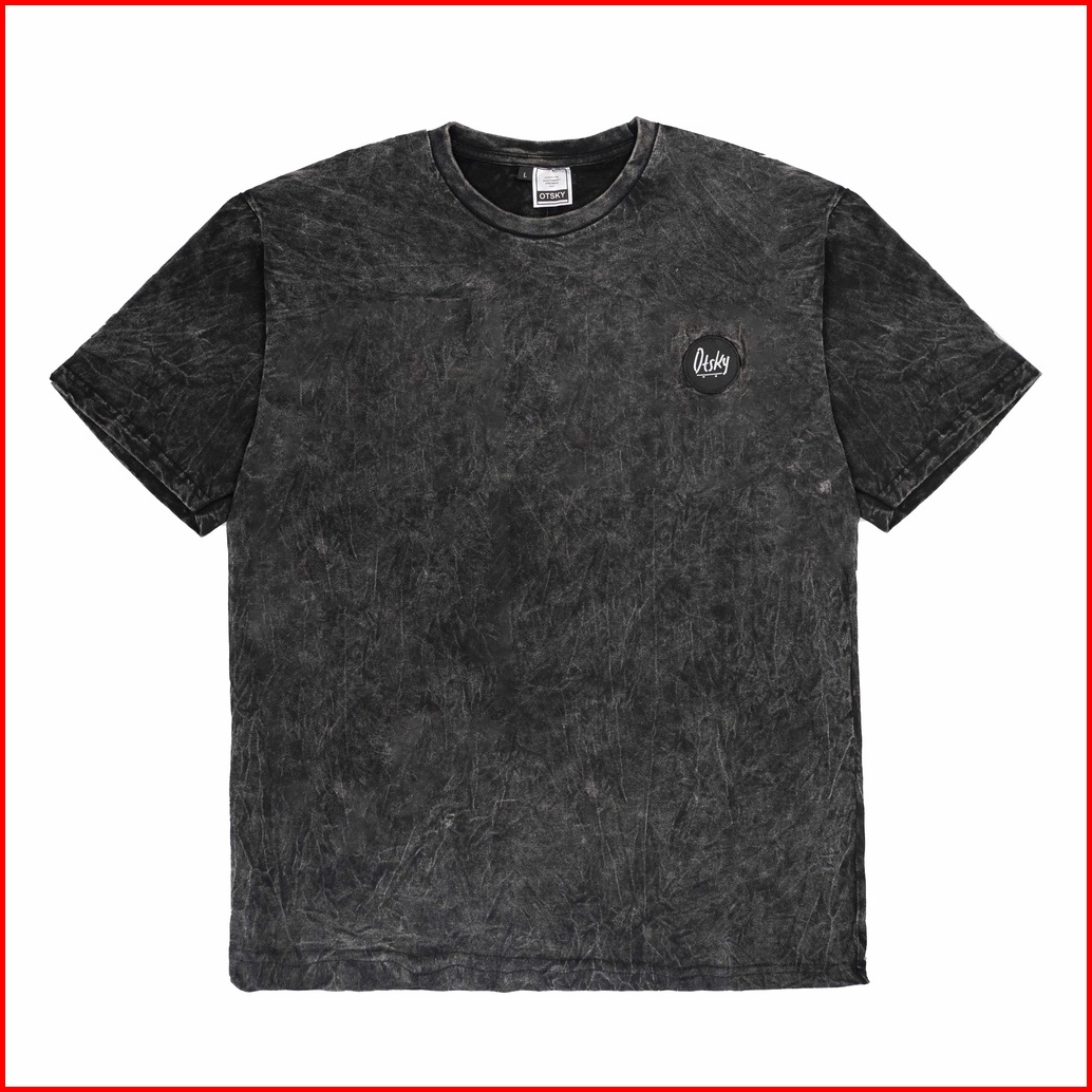 Otsky Kaos Pria Washing Small Logo Black Cotton Combed 24s Pendek N7