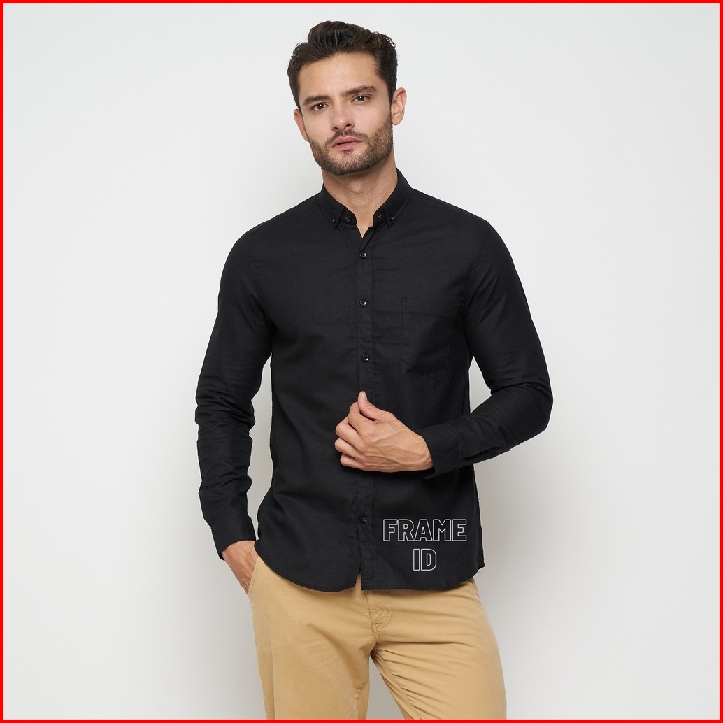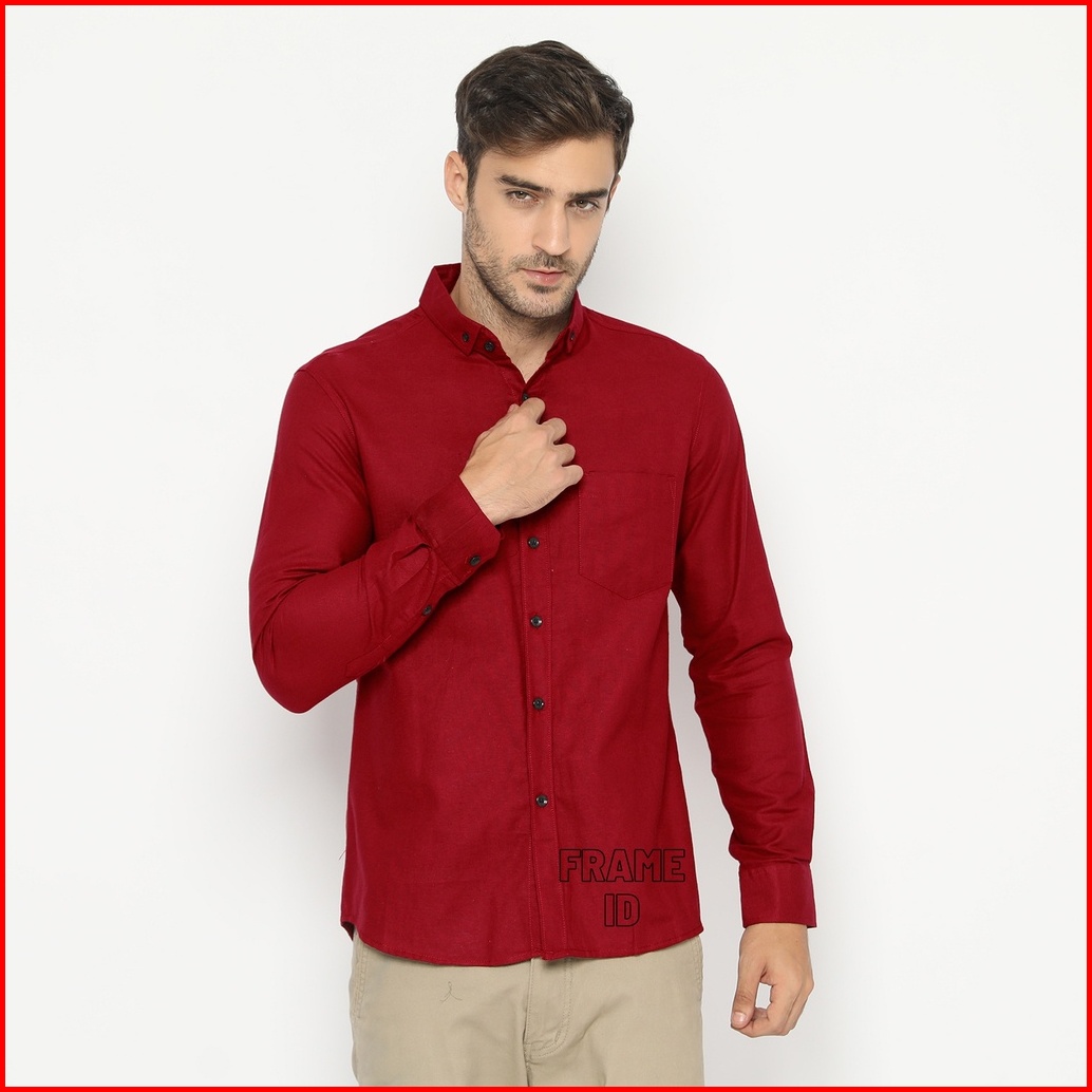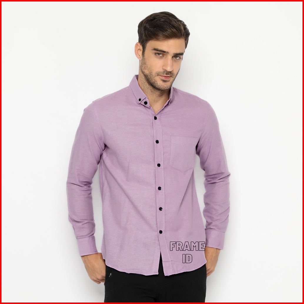 Kemeja Polos Pria Lengan Panjang Warna Hijau Lemon