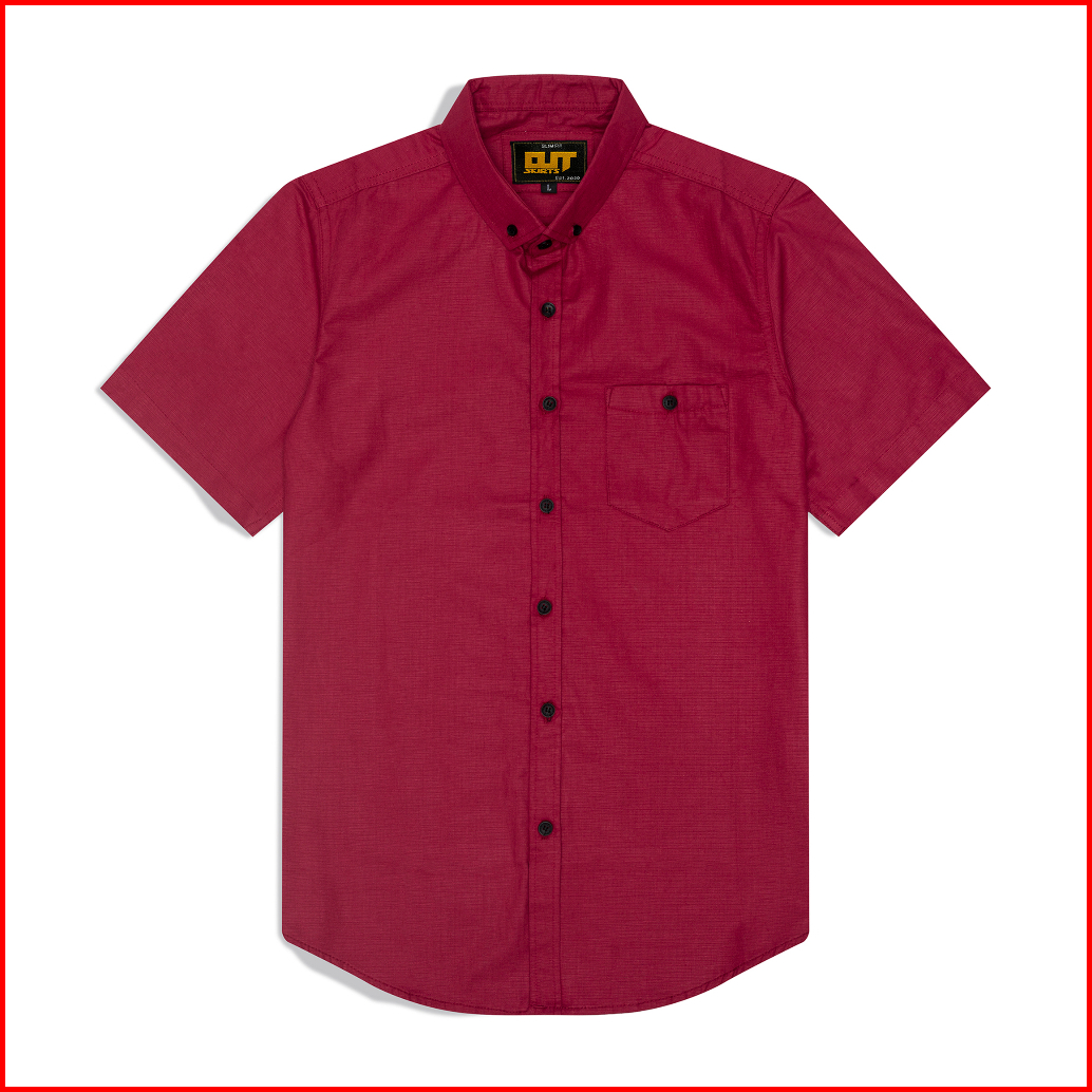 Outskirts - Short Sleeves Shirt Brown Kemeja Polos Coksu Pria Lengan Pendek Casual Slimfit