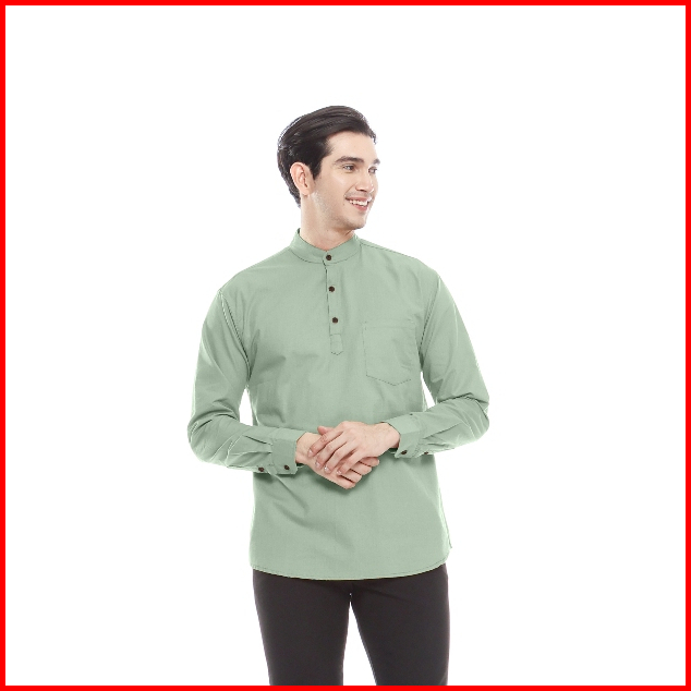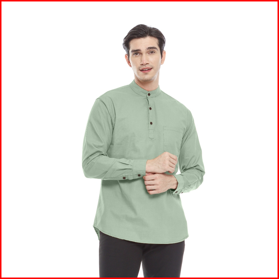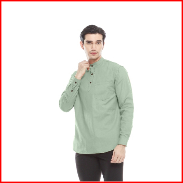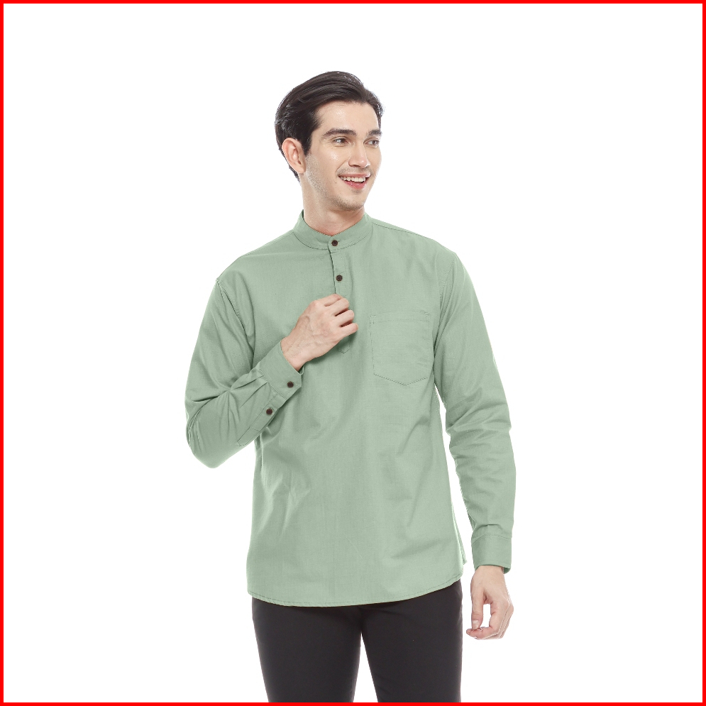 Outskirts - Kemeja Koko Sage Green Pria Lengan Panjang Slimfit