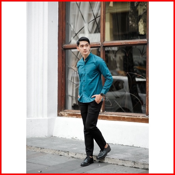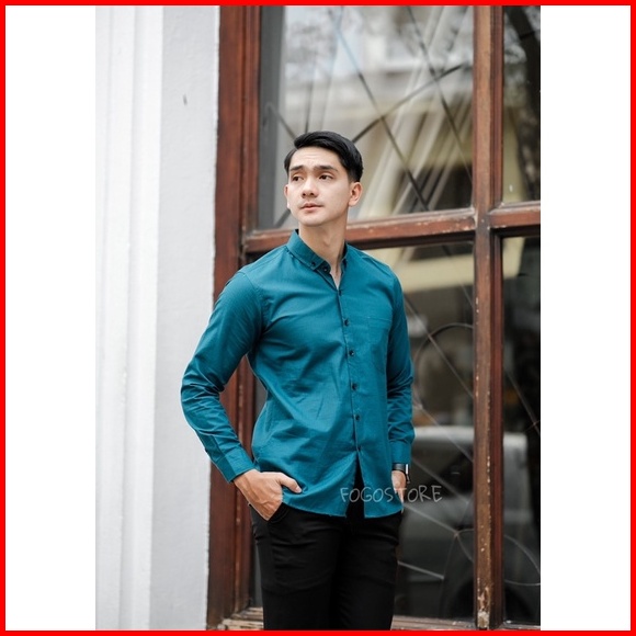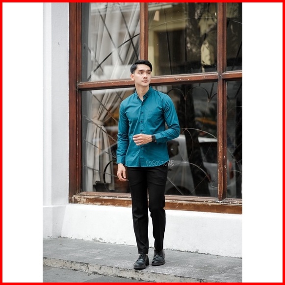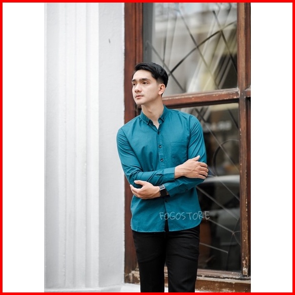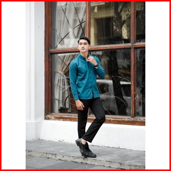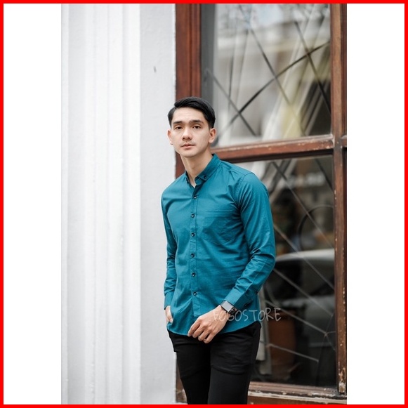 Kemeja Pria Basic Polos Panjang Biru Tosca Premium 1468d