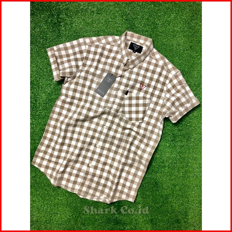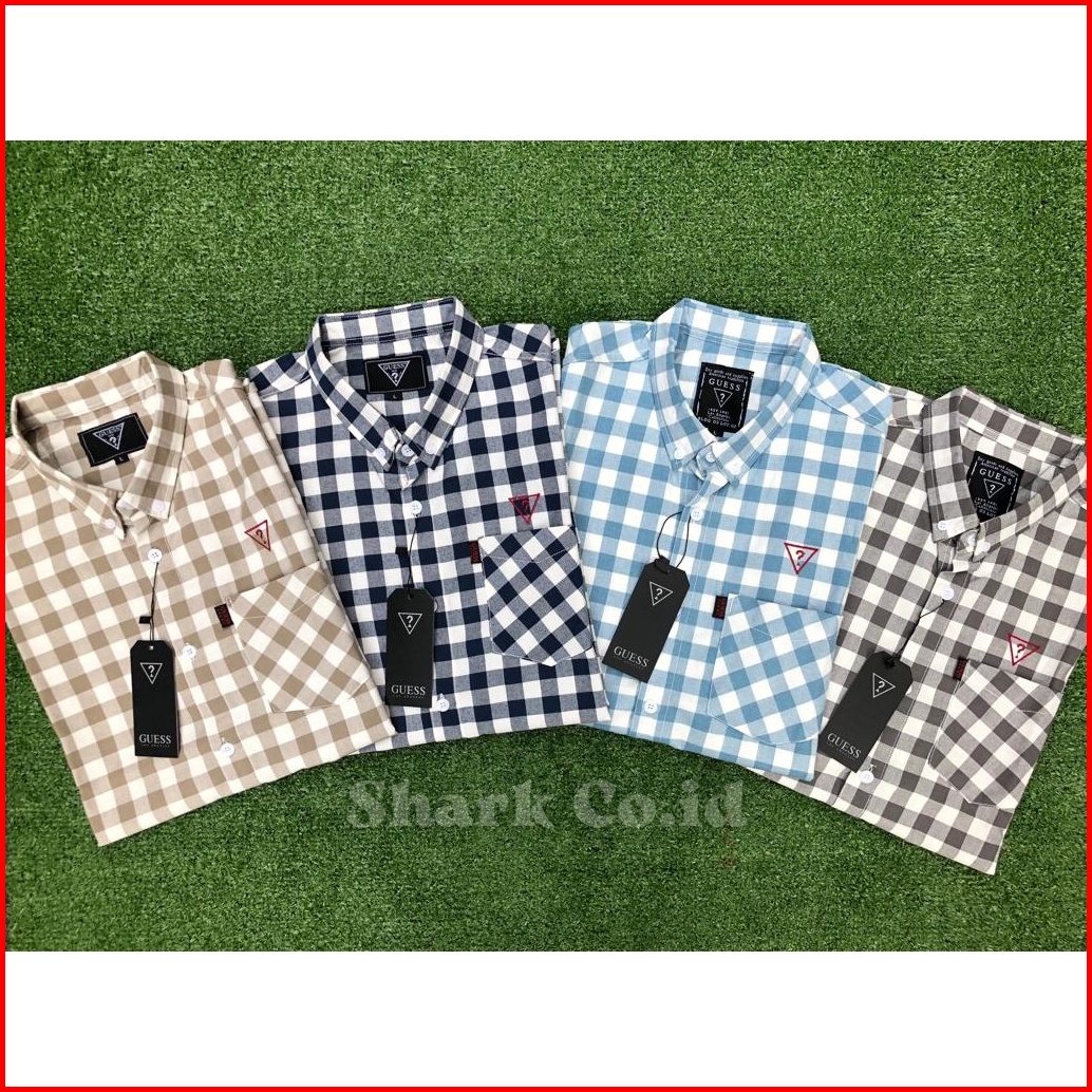 Kemeja Lengan Pendek Pria Guess Motif Kemeja Catton Casual Kerja Pria Kemeja Kotak Kotak Terbaru Pria Kemeja Pria Distro