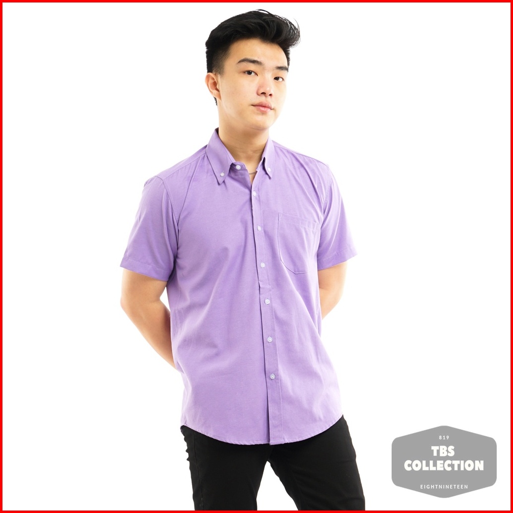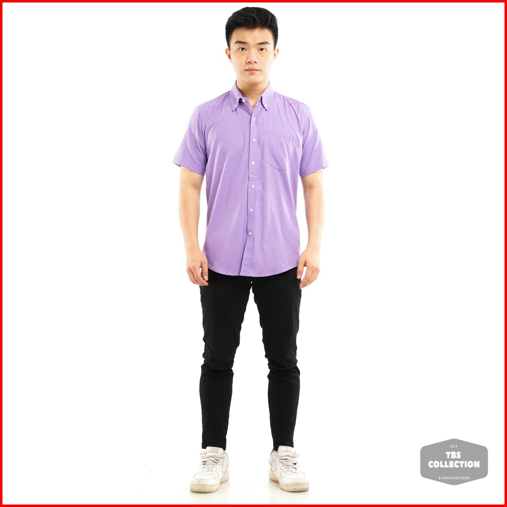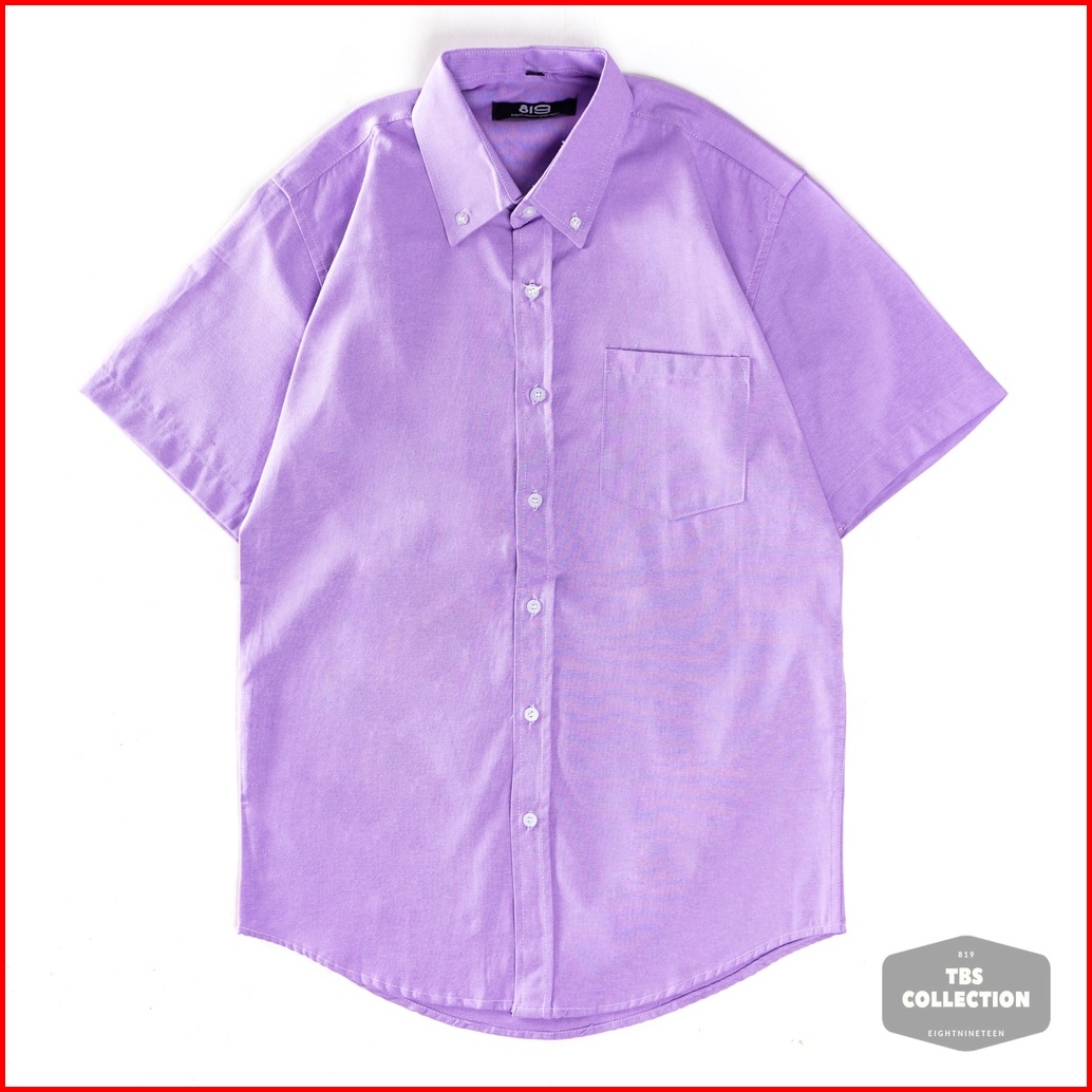 Eight Nineteen Kemeja Polos Pria Lengan Pendek Lavender Ungu Tua Oxford Slimfit Casual Simple Purple Tersedia Hingga Big