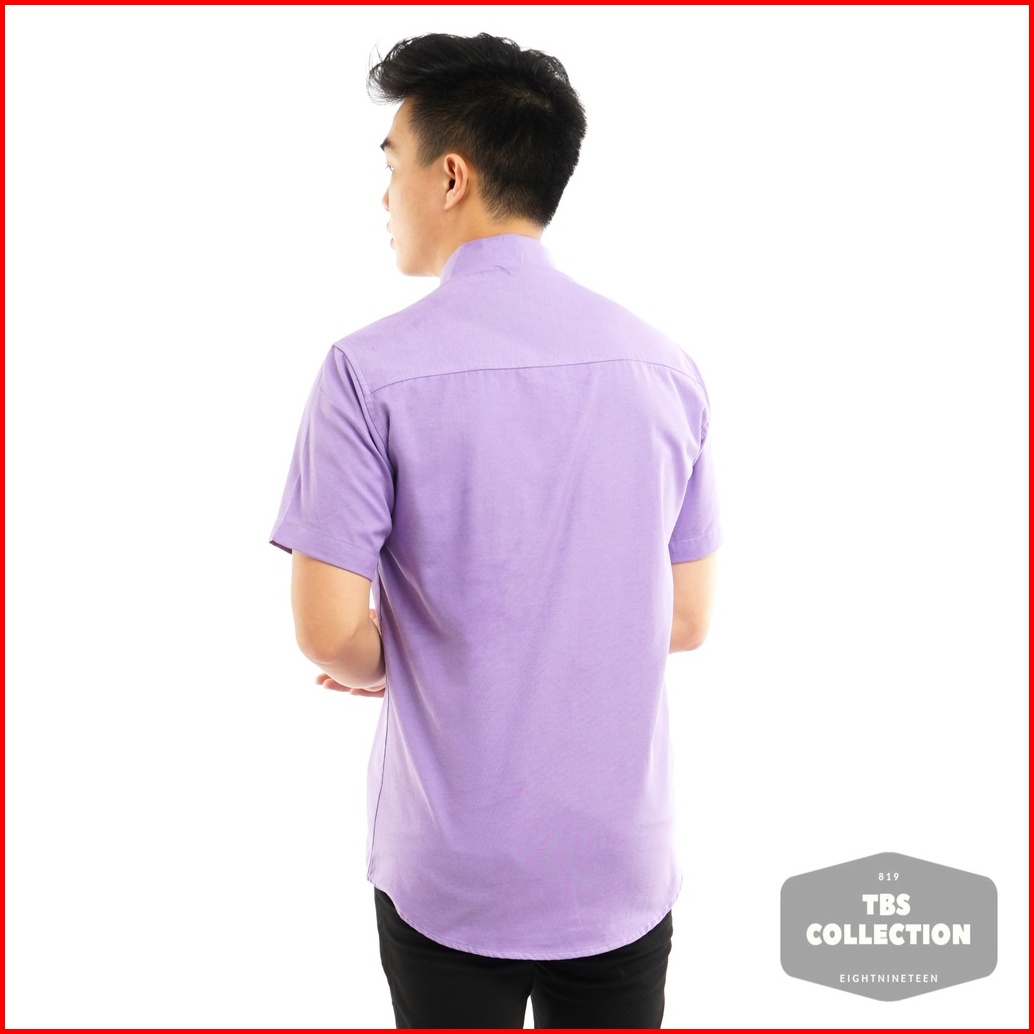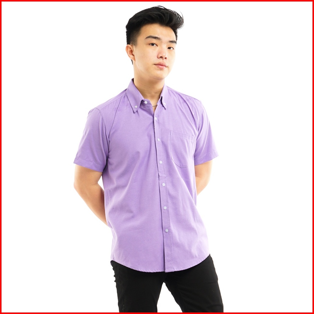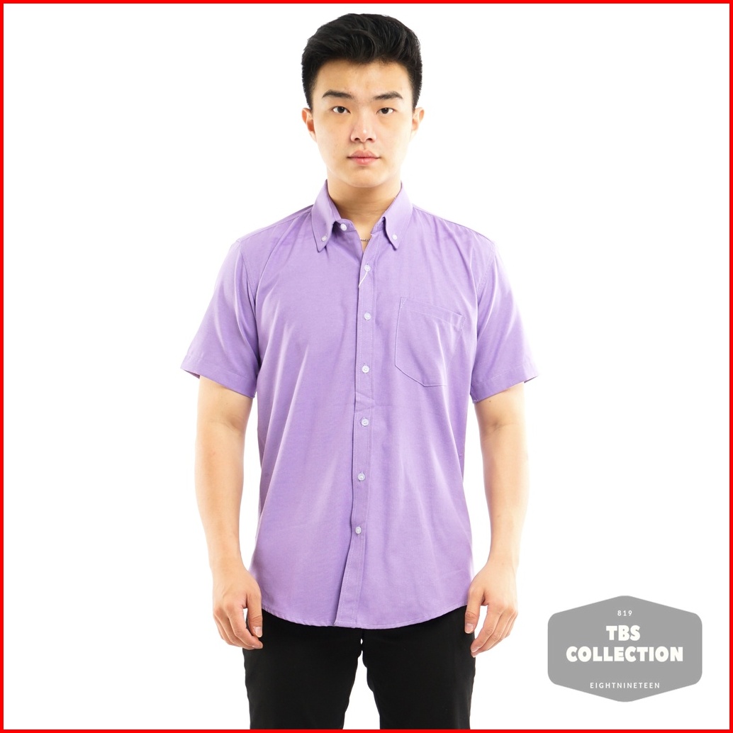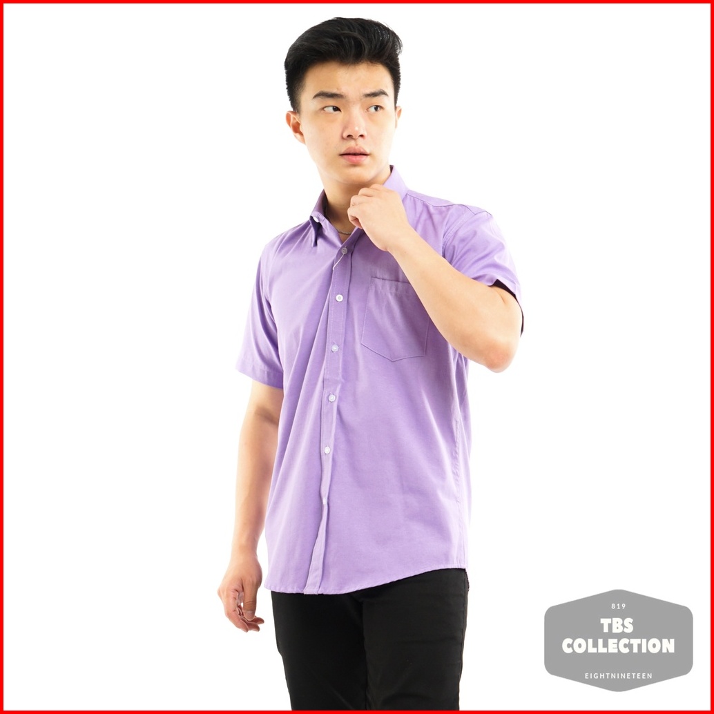 Eight Nineteen Kemeja Polos Pria Lengan Pendek Lavender Ungu Tua Oxford Slimfit Casual Simple Purple Tersedia Hingga Big