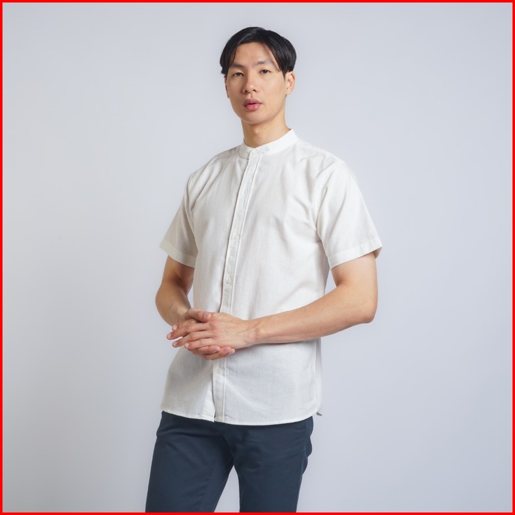Wrestlerstudio Kemeja Shanghai Pria Lengan Pendek - Linen Premium