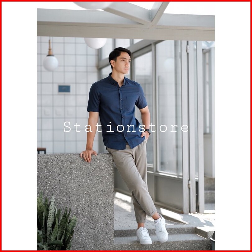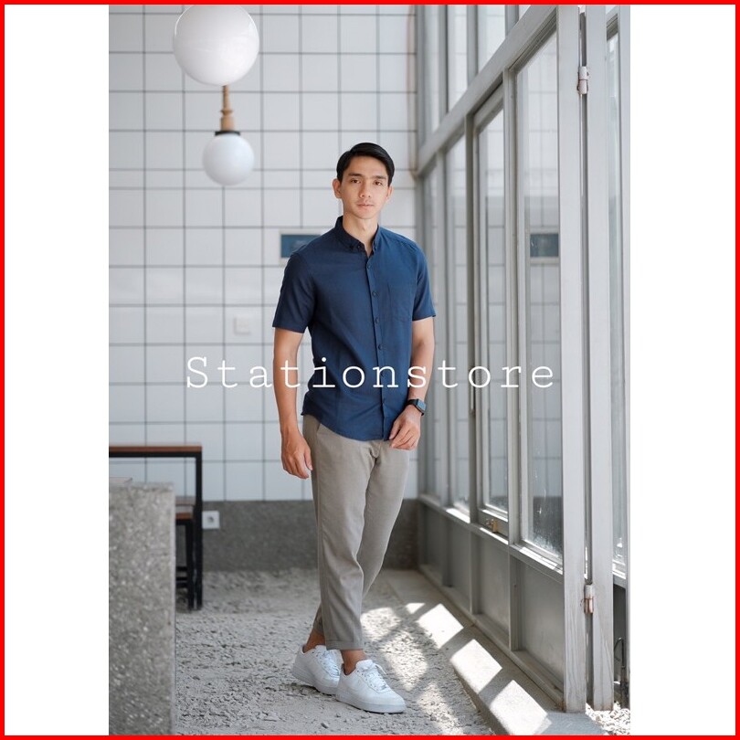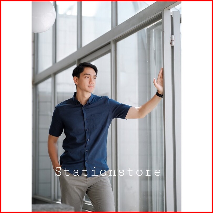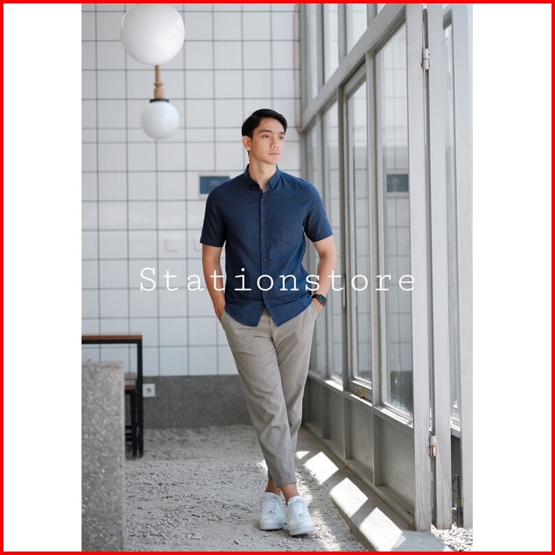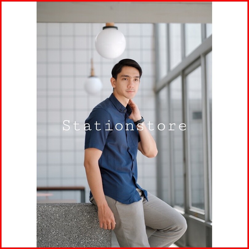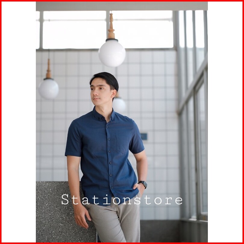 Kemeja Pria Polos Hem Cowo Lengan Pendek Warna Navy