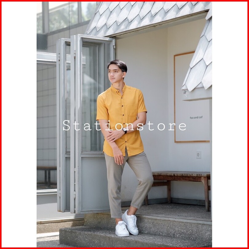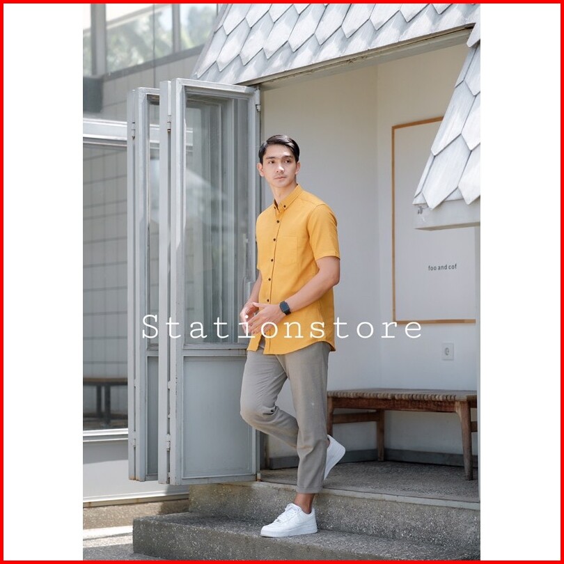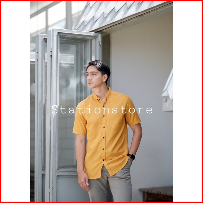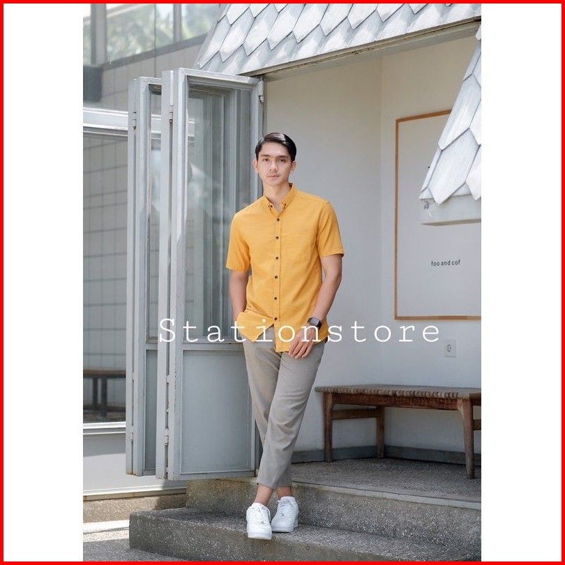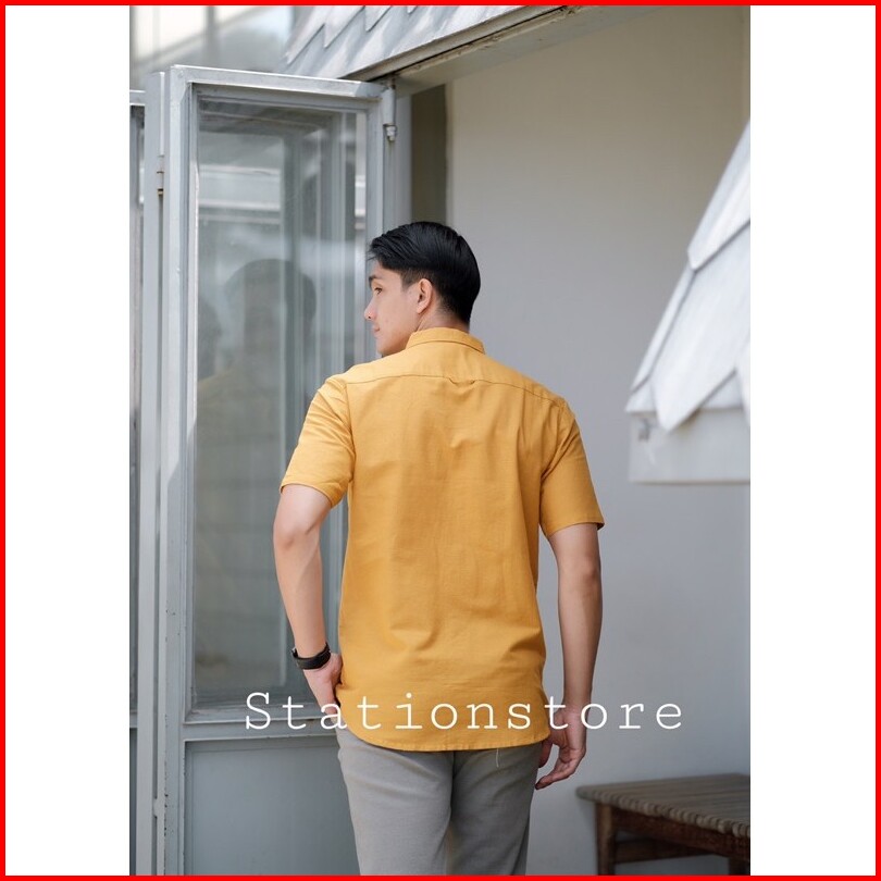 Kemeja Cowok Polos Lengan Pendek Pria Mustard