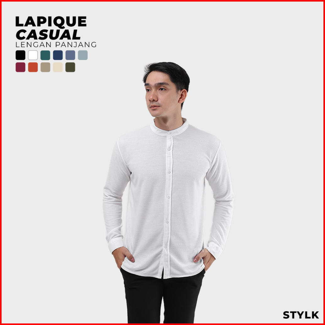 Stylelaki Lapique - Kemeja Putih Pria Casual Lengan Panjang Slim Fit Anti Kusut Nyaman Dan Lembut