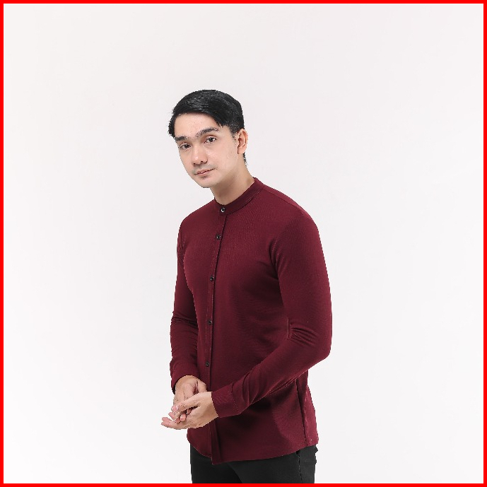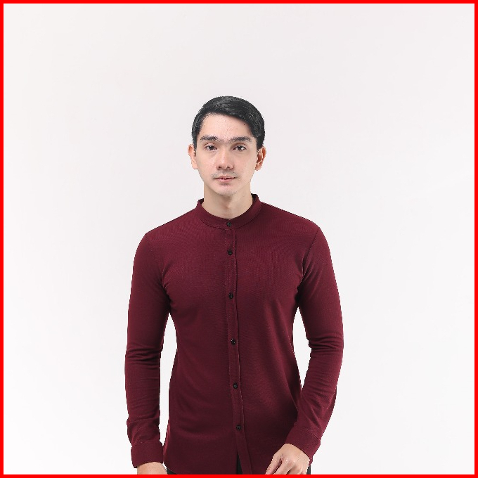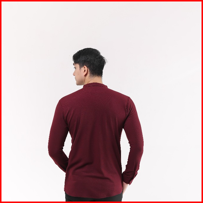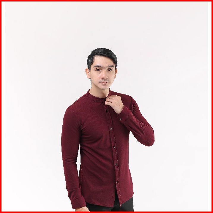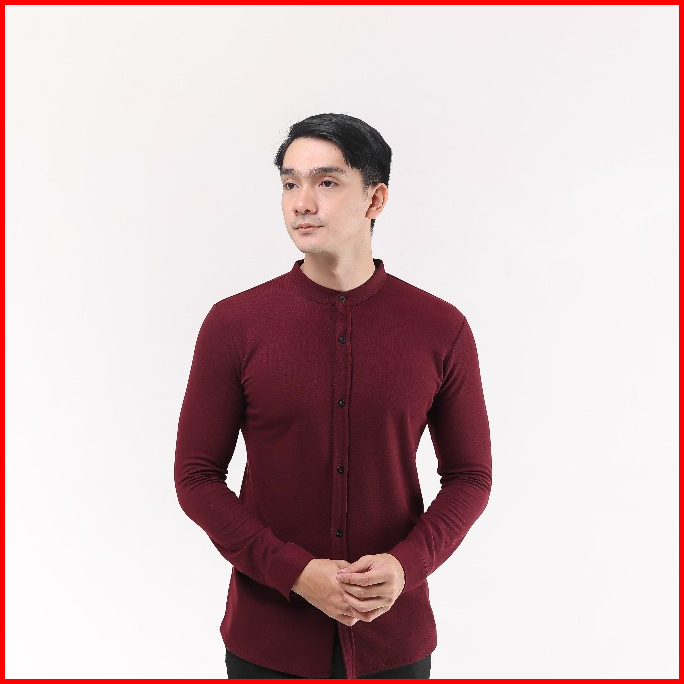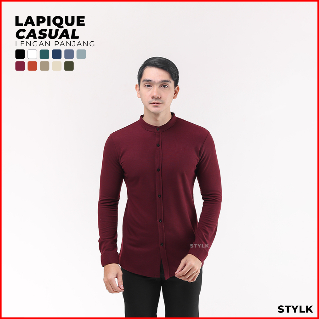 Stylelaki Lapique - Kemeja Burgundy Pria Casual Lengan Panjang Slim Fit Anti Kusut Nyaman Dan Lembut