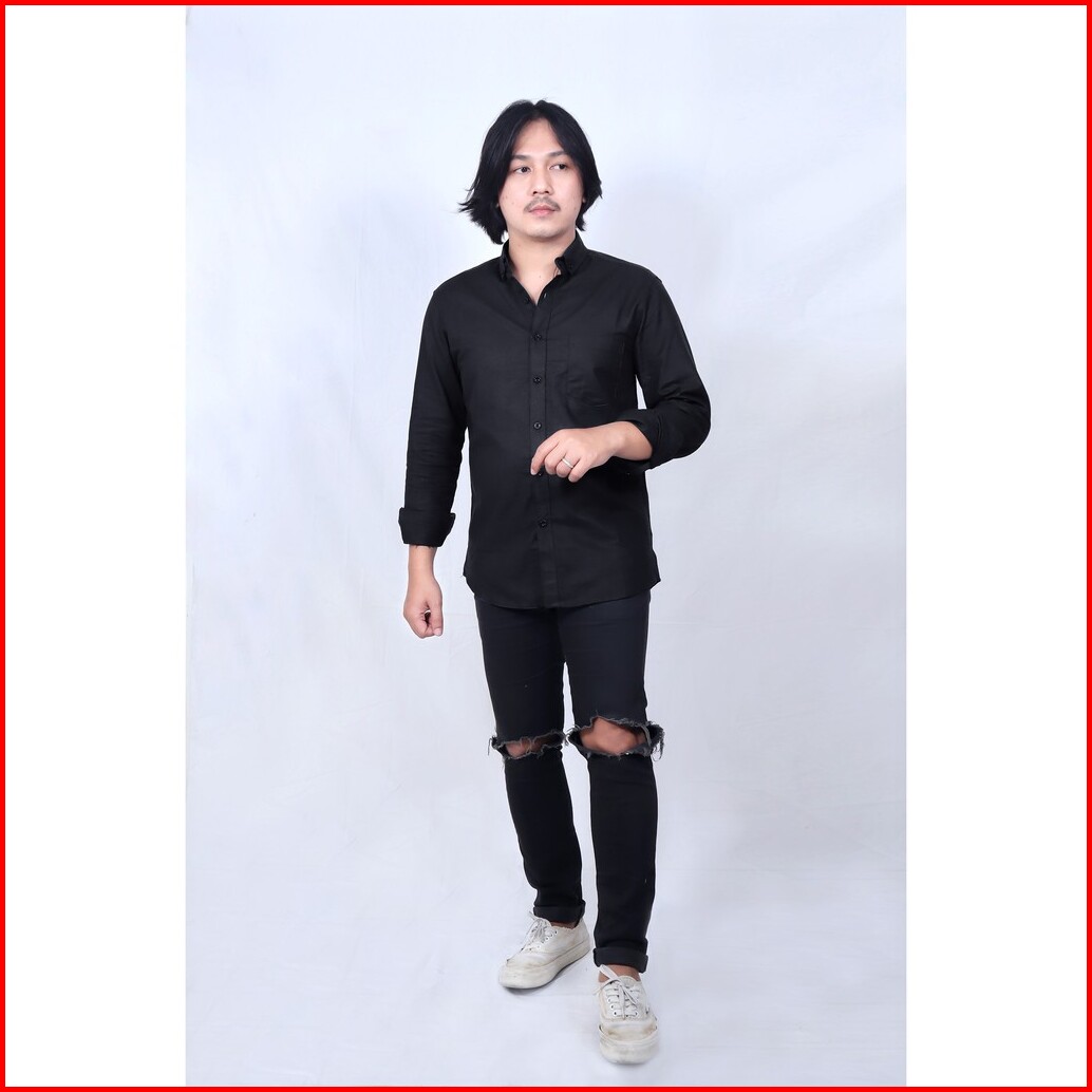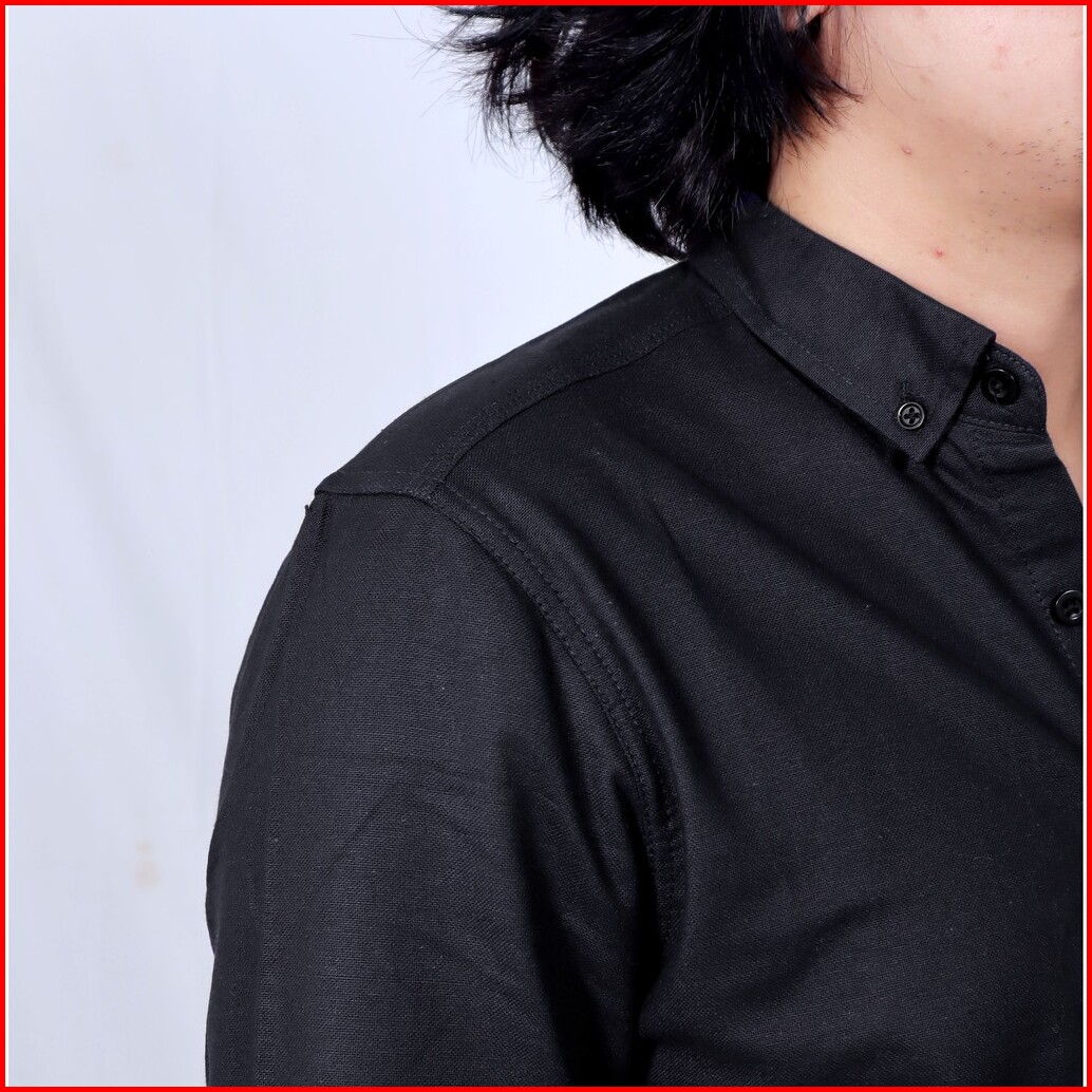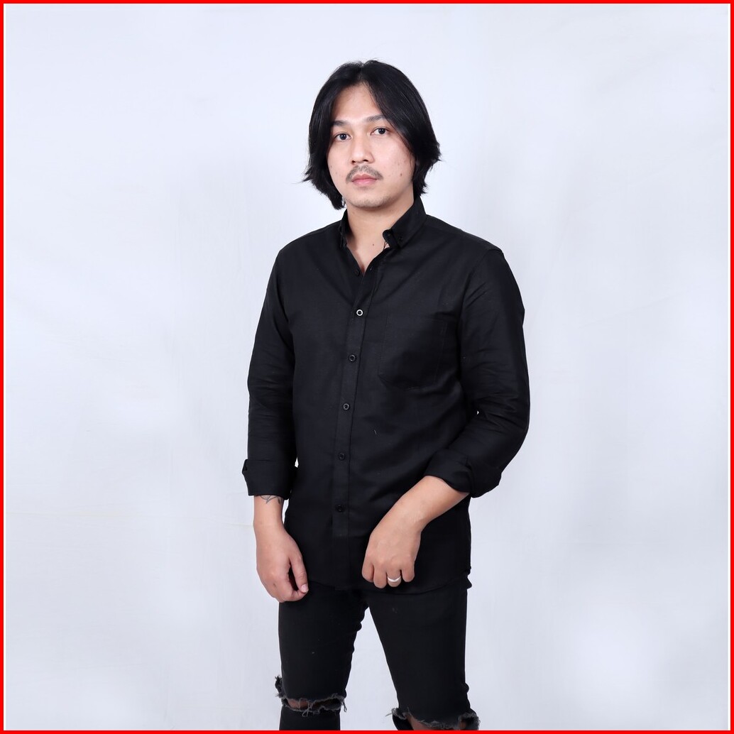 Kemeja Hitam Lengan Panjang Polos Pria Slimfit