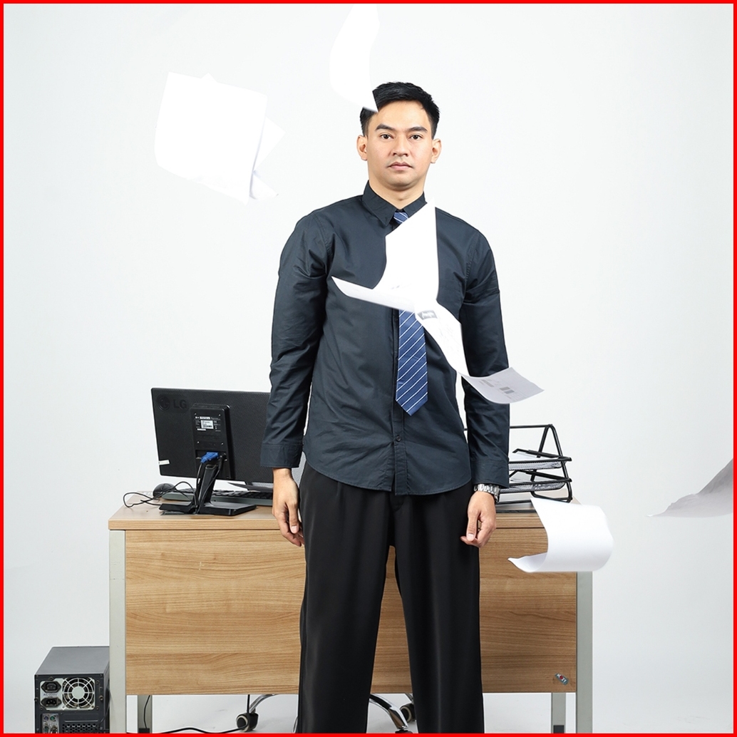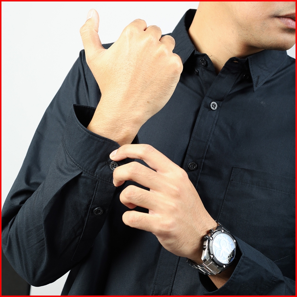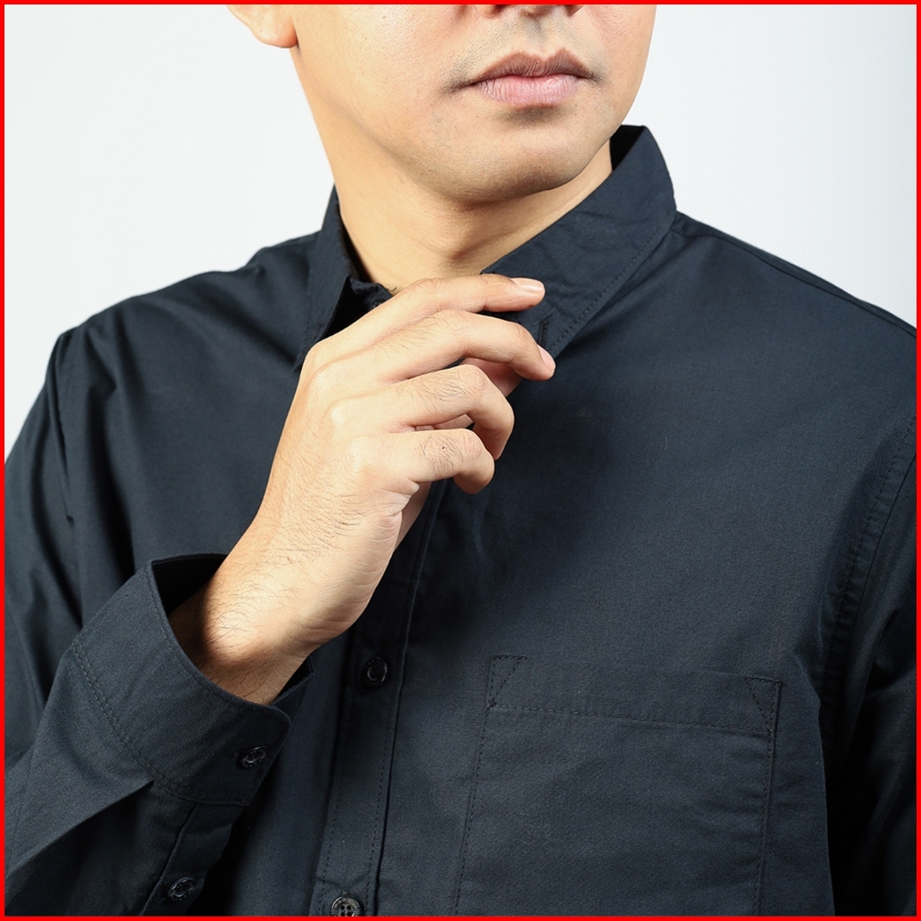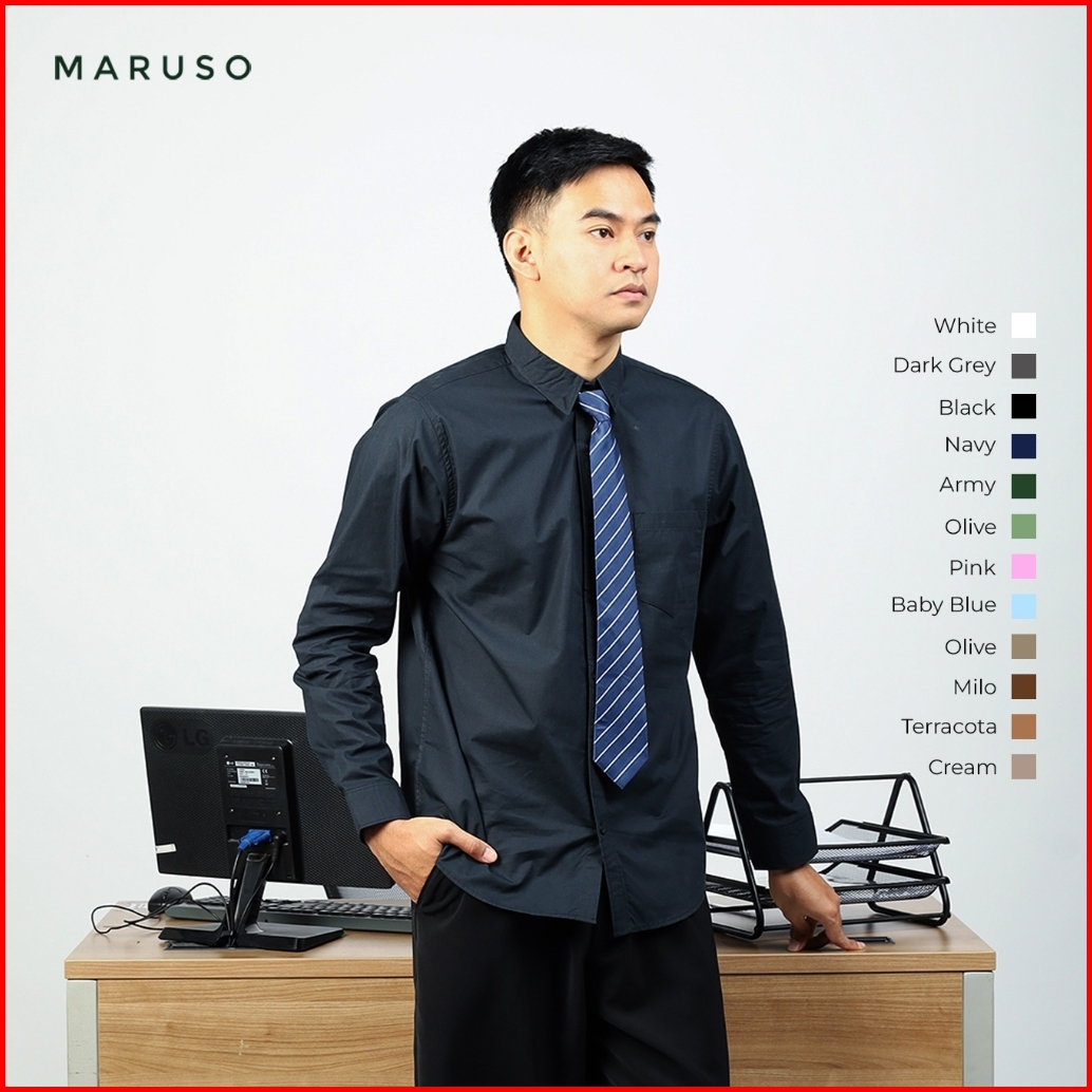 Maruso Kemeja Lengan Panjang Basic Polos Catchy 1 Hitam