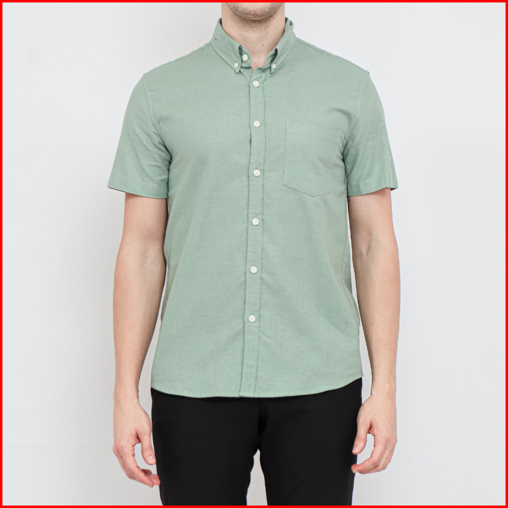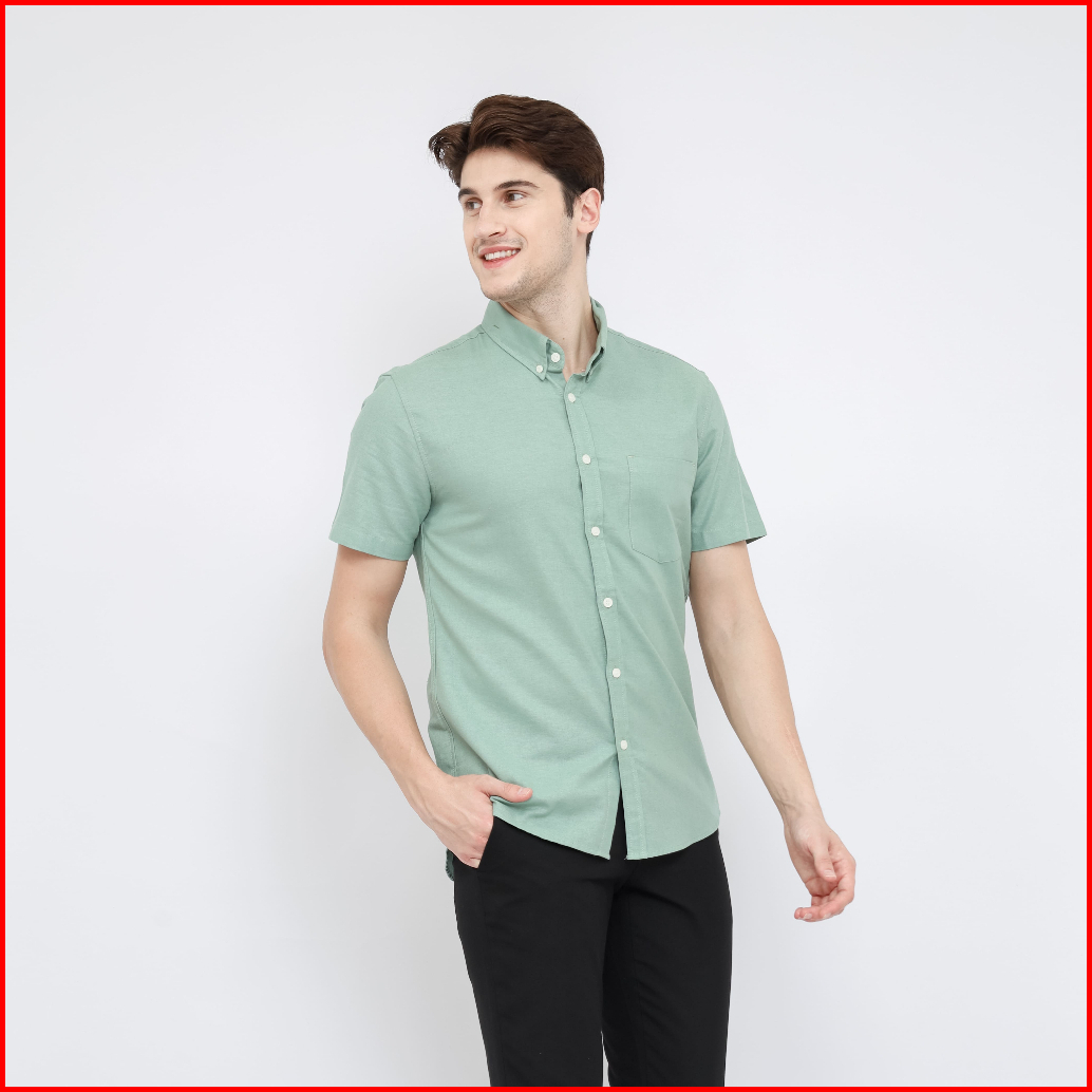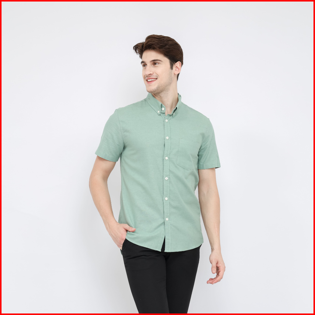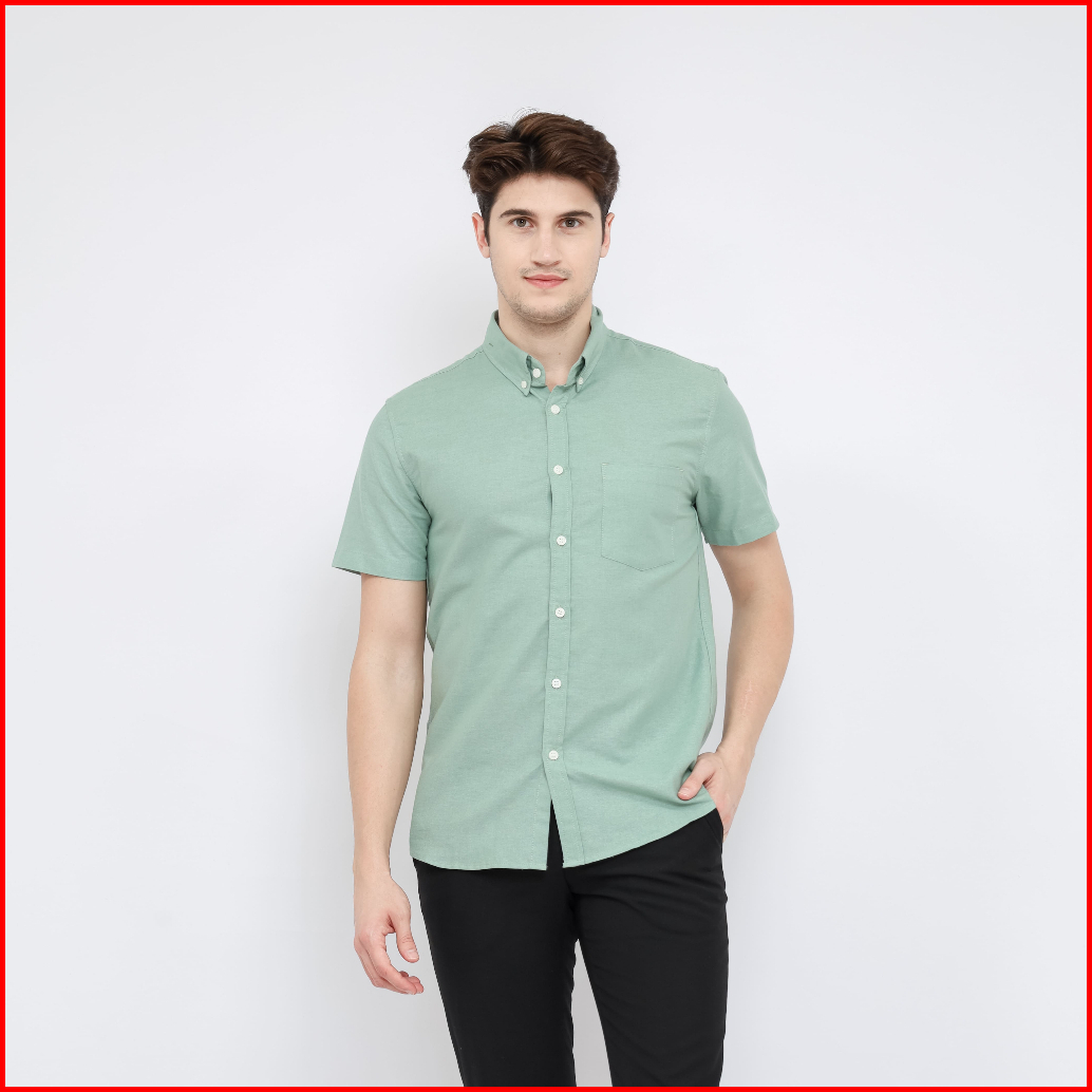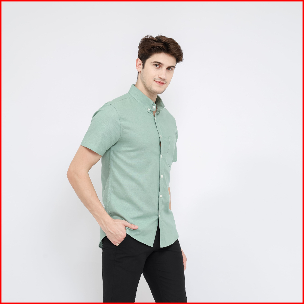 Eniqno - Kemeja Pria Lengan Pendek Katun Linen - Sage