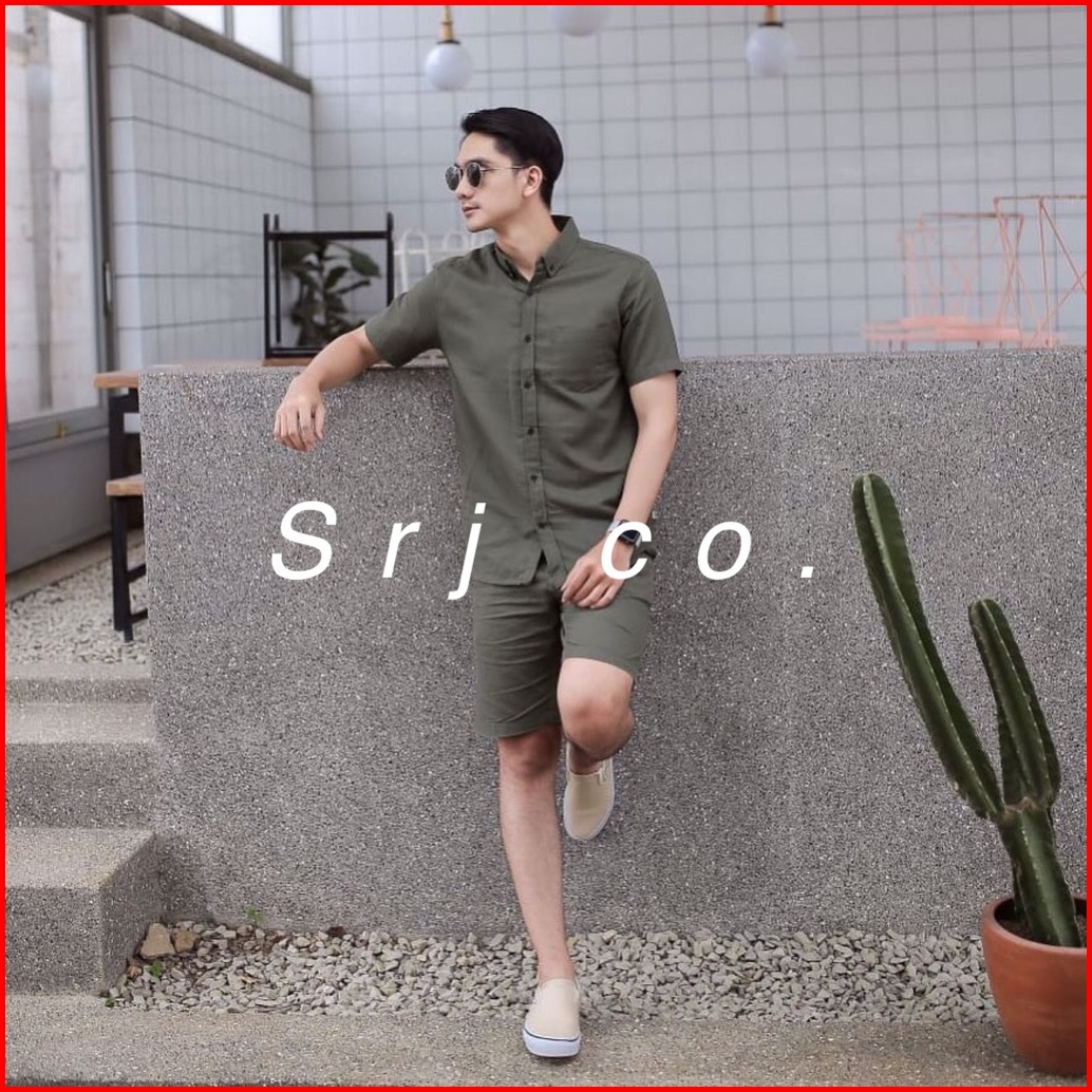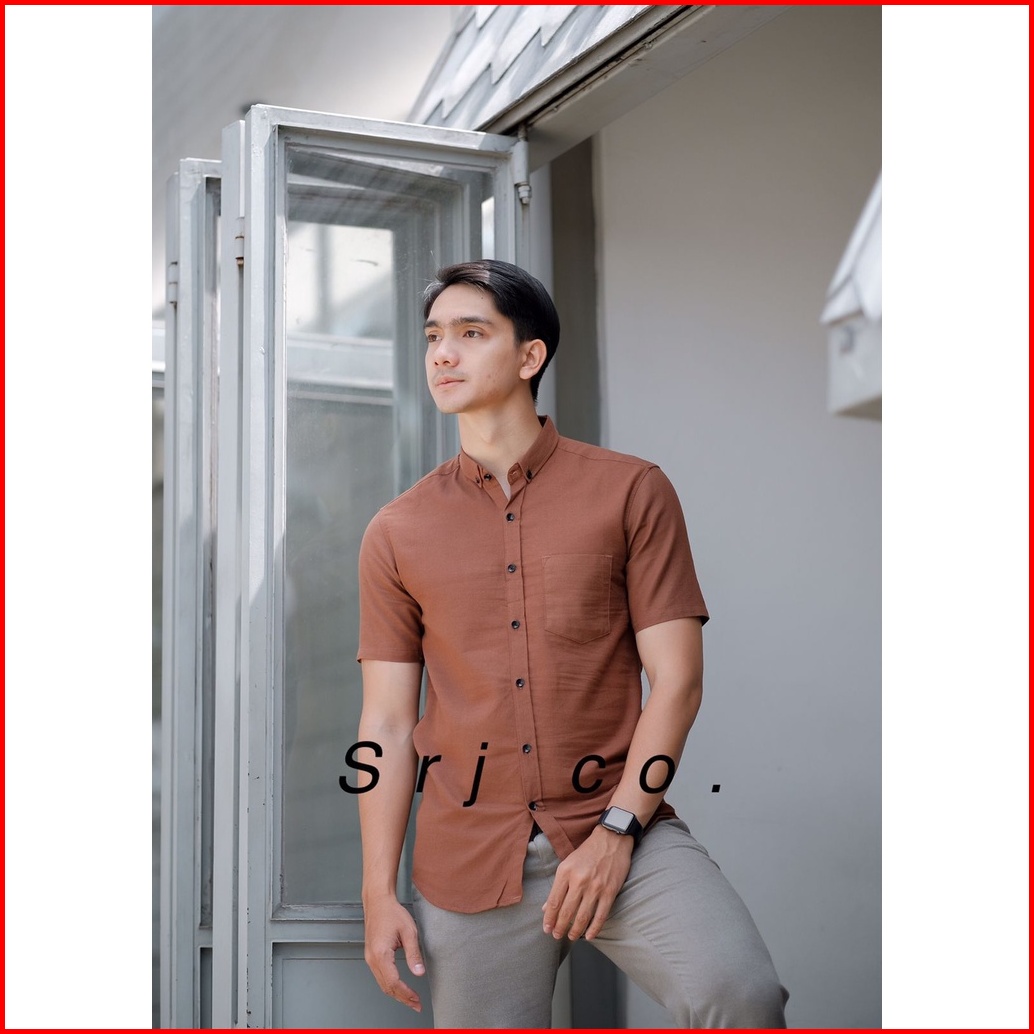 Kemeja Polos Pria Lengan Pendek Kemeja Kasual Pria Warna Coklat