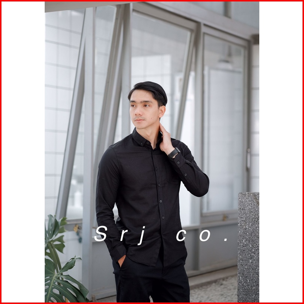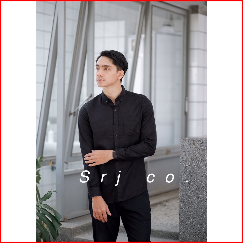 Kemeja Polos Pria Lengan Panjang Kemeja Kasual Pria Warna Hitam