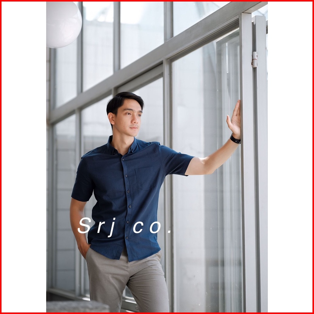 Kemeja Polos Pria Lengan Pendek Kemeja Kasual Pria Warna Navyi