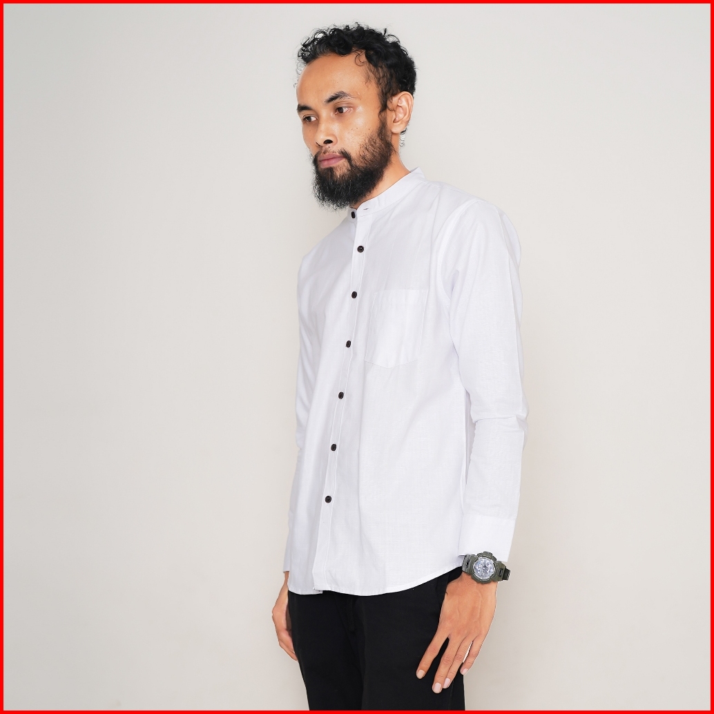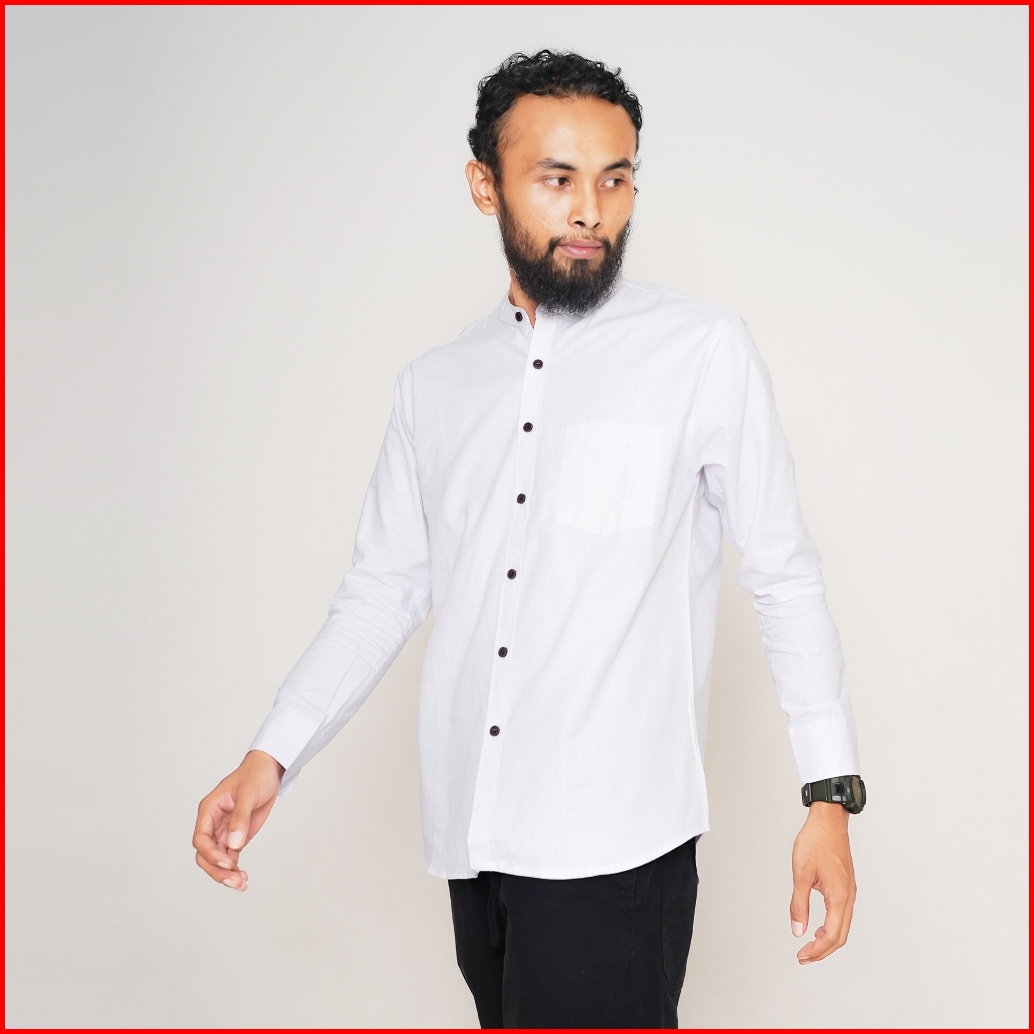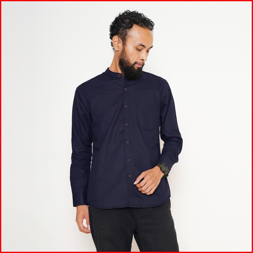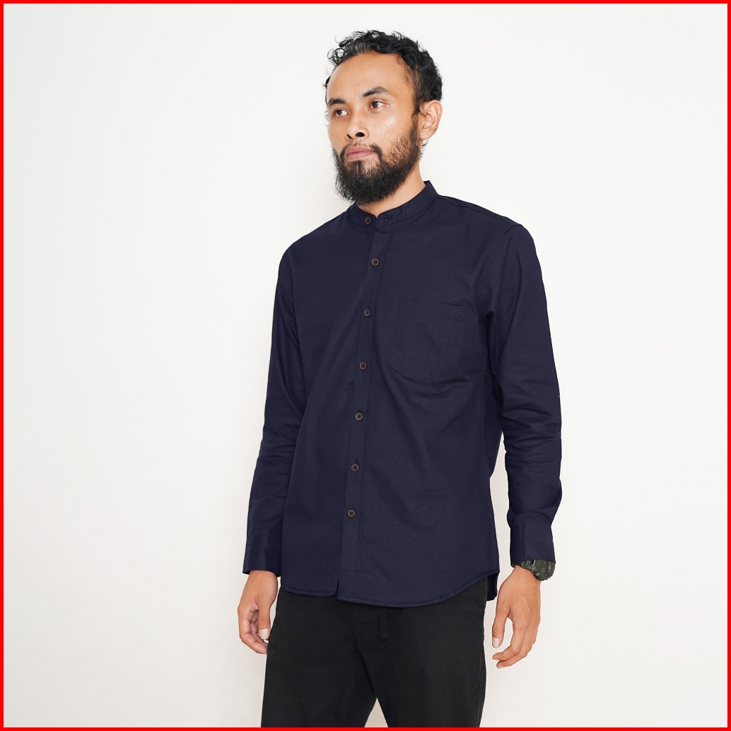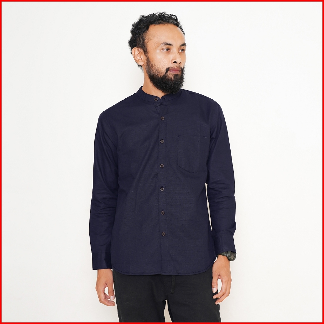 Bonang In Style - Kemeja Koko Kemko Polos Pria Lengan Panjang Bahan Katun Warna Navy