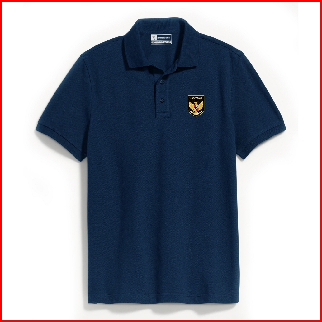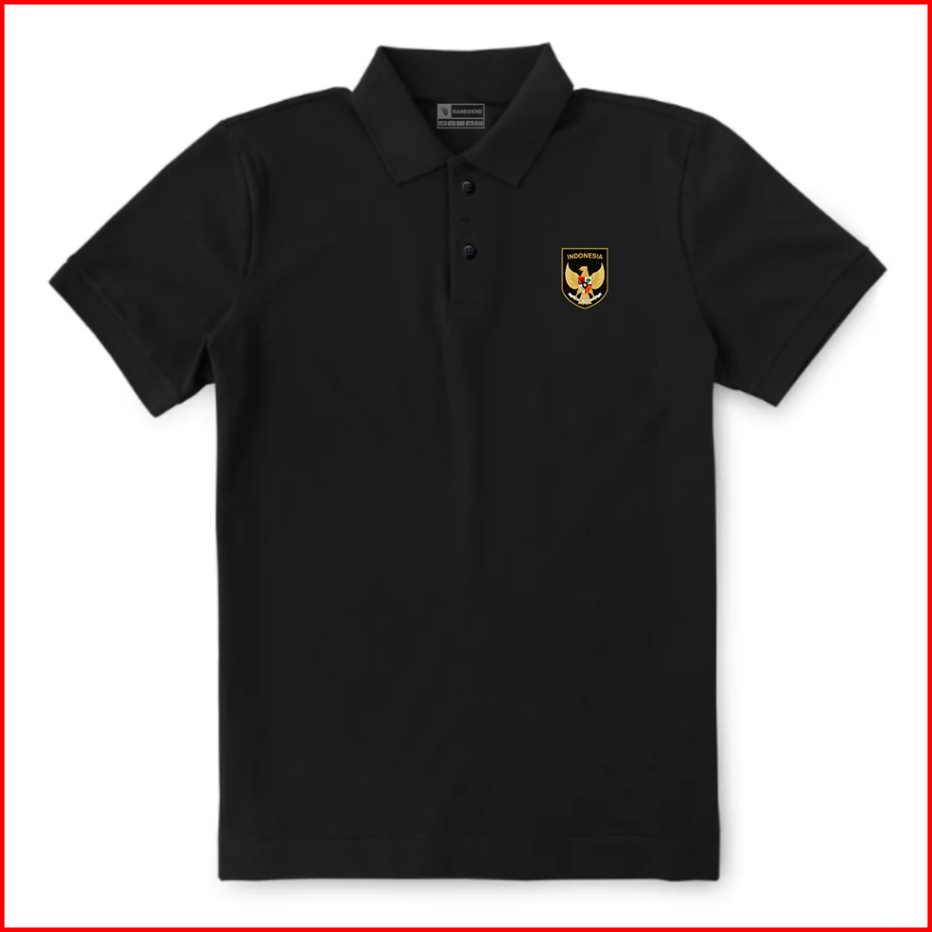Rambidend - Polo Shirt Logo Terkeren T-shirt Baju Santai Baju Kerja Baju Kerah Logo Garuda Indo Hitam