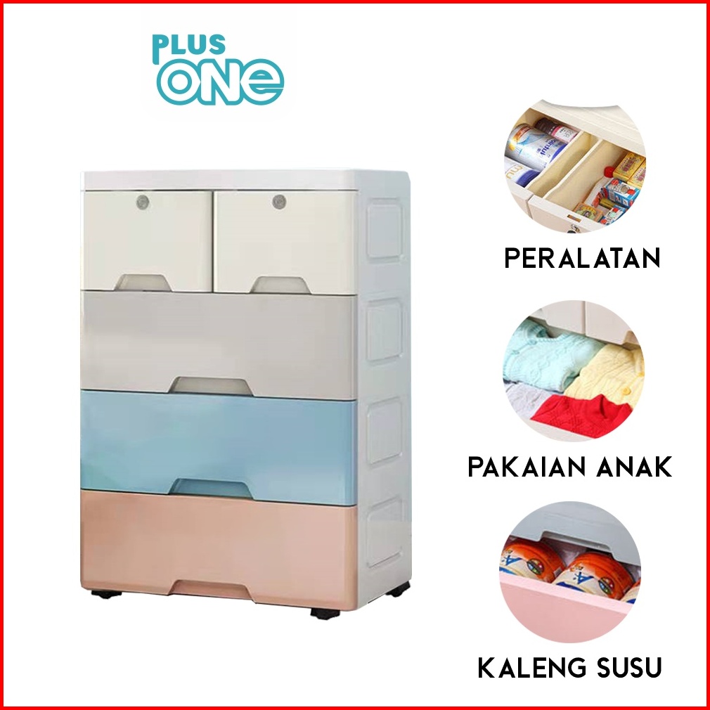 Plus One Lemari Plastik Pakaian Anak Dan Dewasa Ukuran Jumbo 4 Tingkat Kamar Tidur Dapur - 1225
