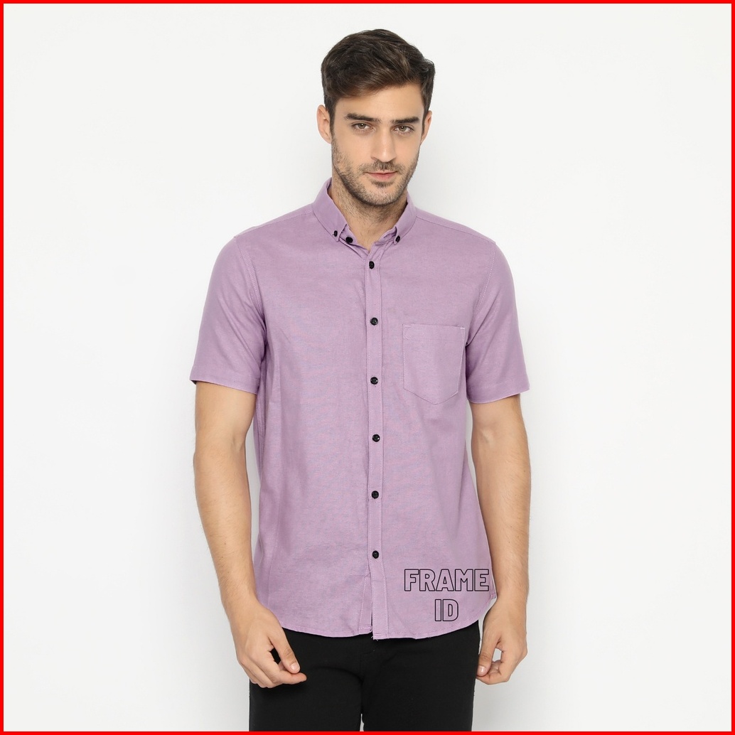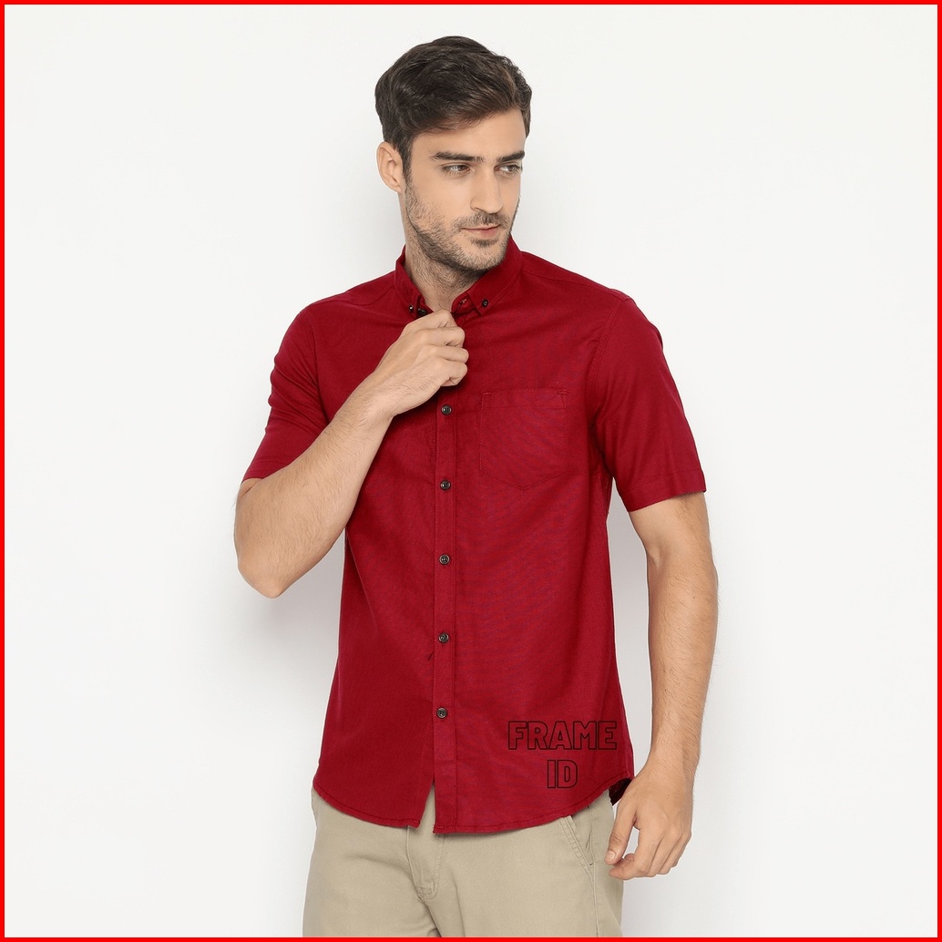 Kemeja Polos Pria Lengan Pendek Warna Maroon