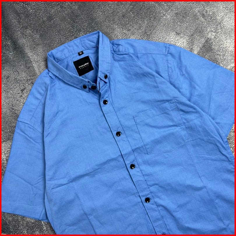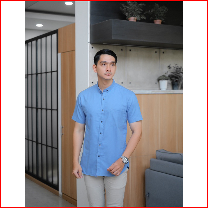 Kemeja Polos Pria Lengan Pendek Biru Denim