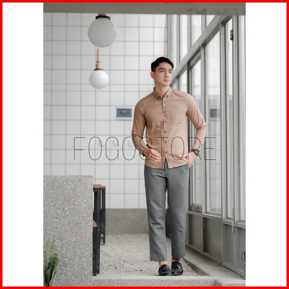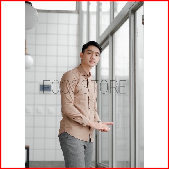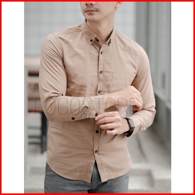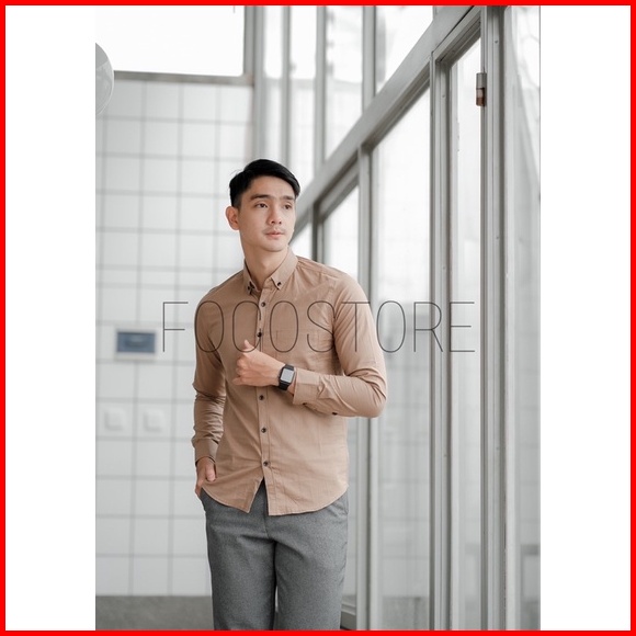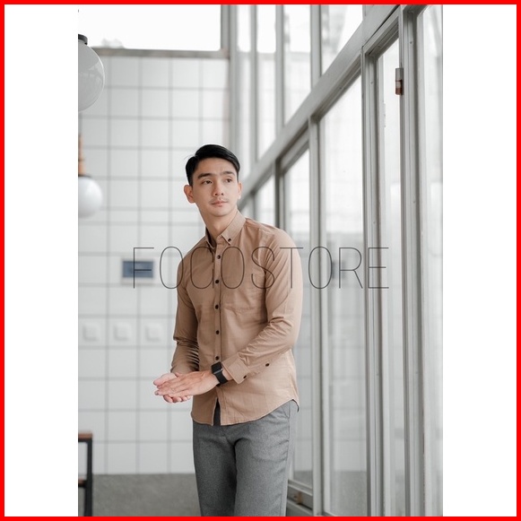 Kemeja Pria Basic Polos Oxford Panjang Coklat