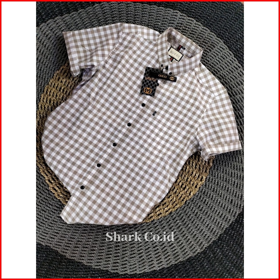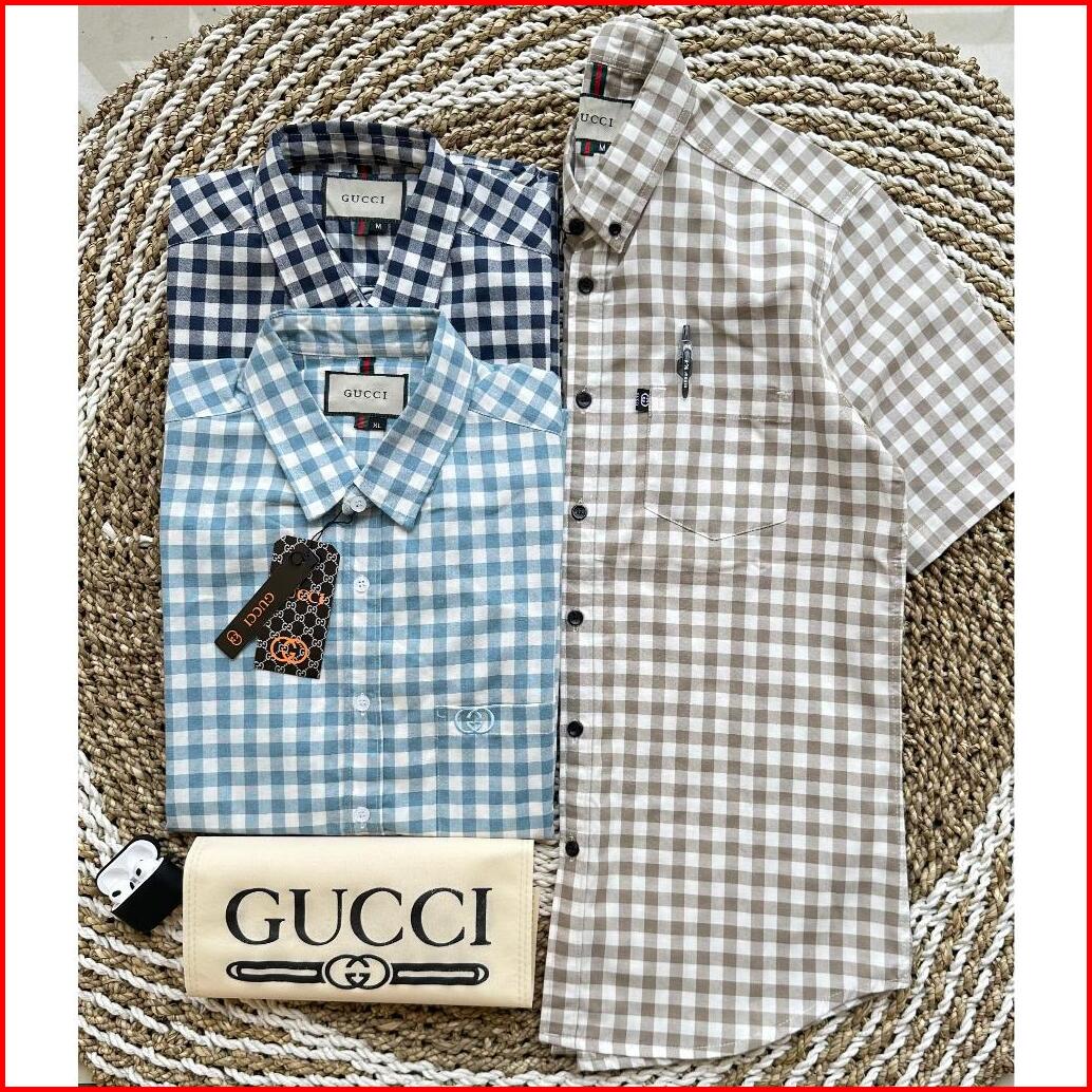 Kemeja Gucci Pria Lengan Pendek Kemeja Kerja Kantor Pria Kemeja Casual Pria Terbaru Kemeja Santai Kotak-kotak Pria