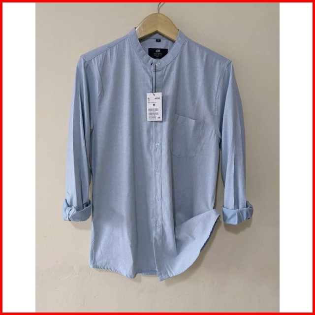 Kemeja Panjang Kerah Shanghai Kemeja Polos Pria Shanghai H M Soft Twill Katun