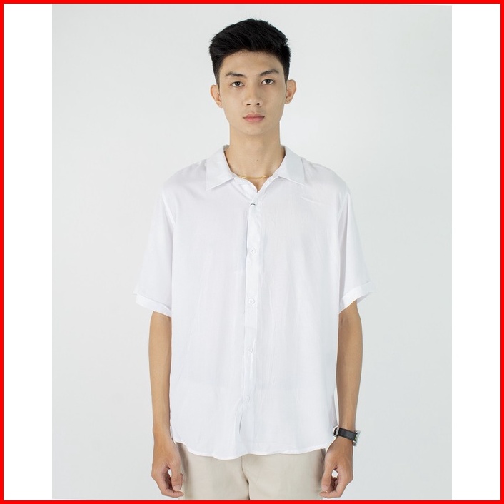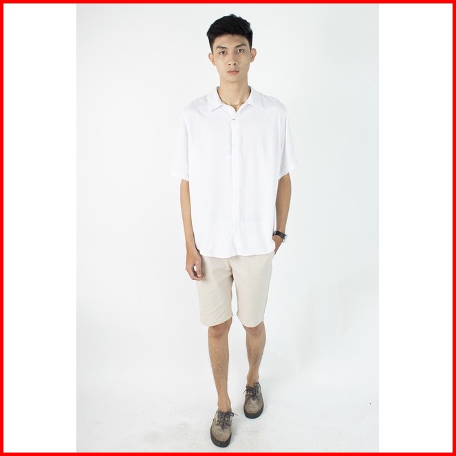 Fortklass Rayon Polos Putih Kemeja Polos Pria Lengan Pendek Kasual