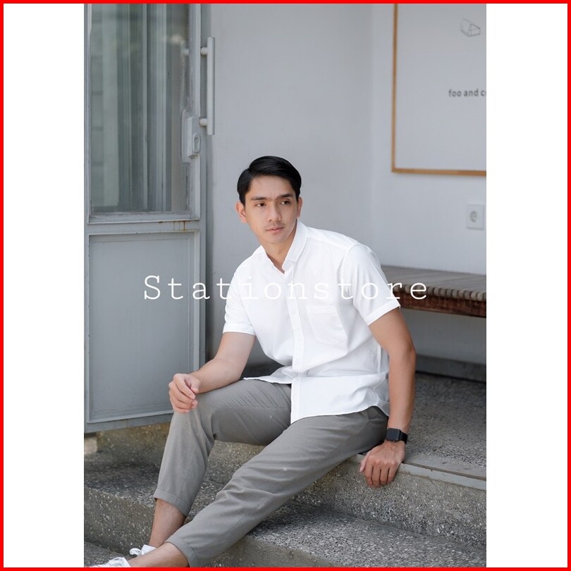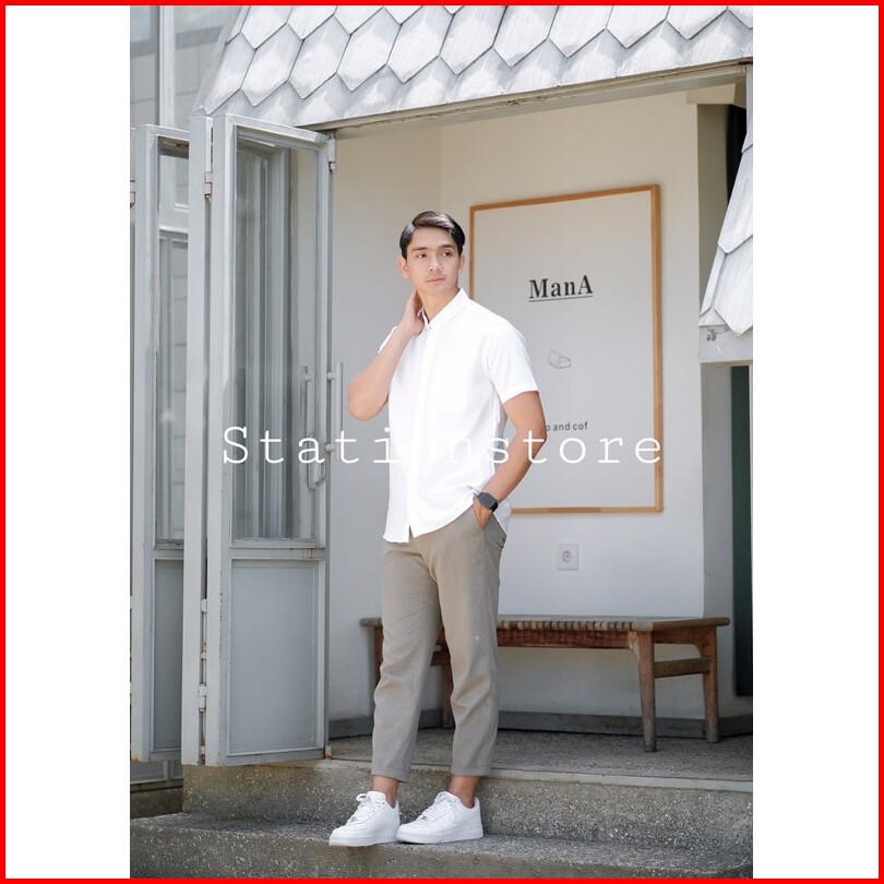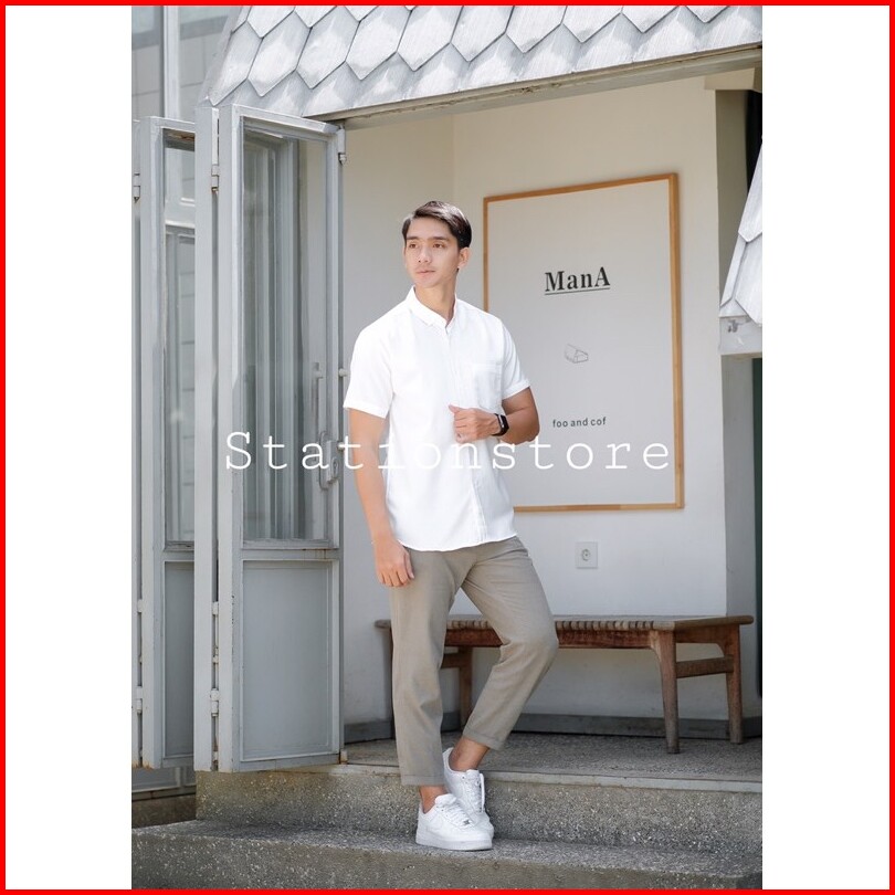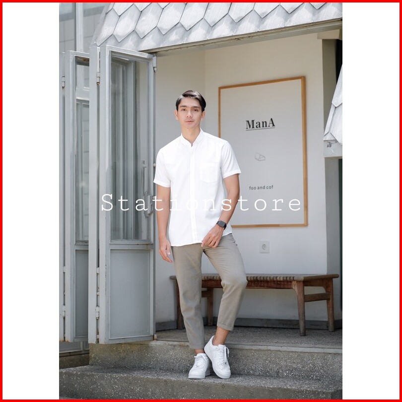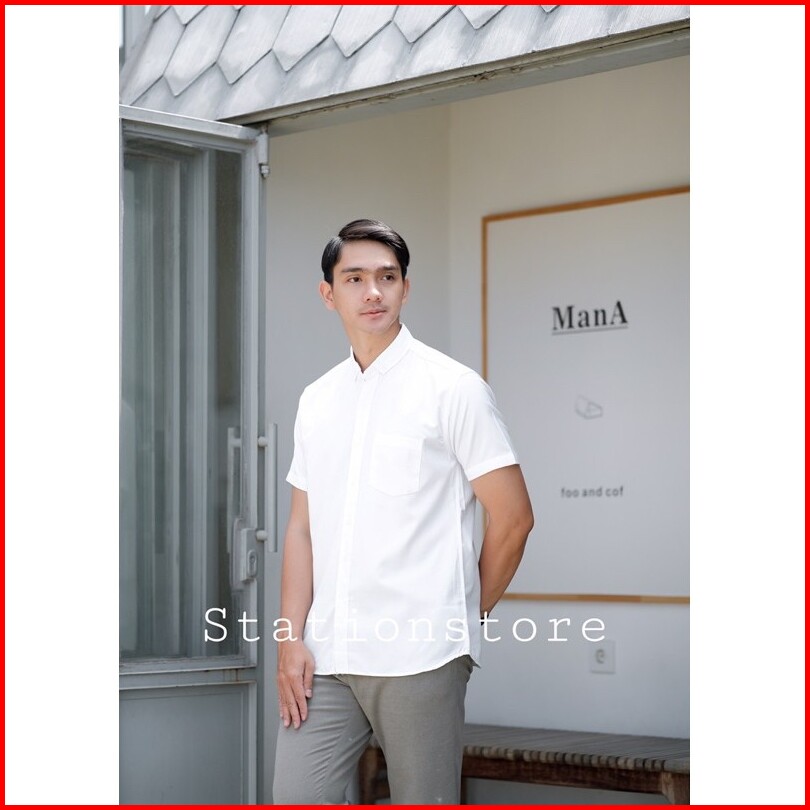 Kemeja Pria Slimfit Hem Polos Lengan Pendek Putih