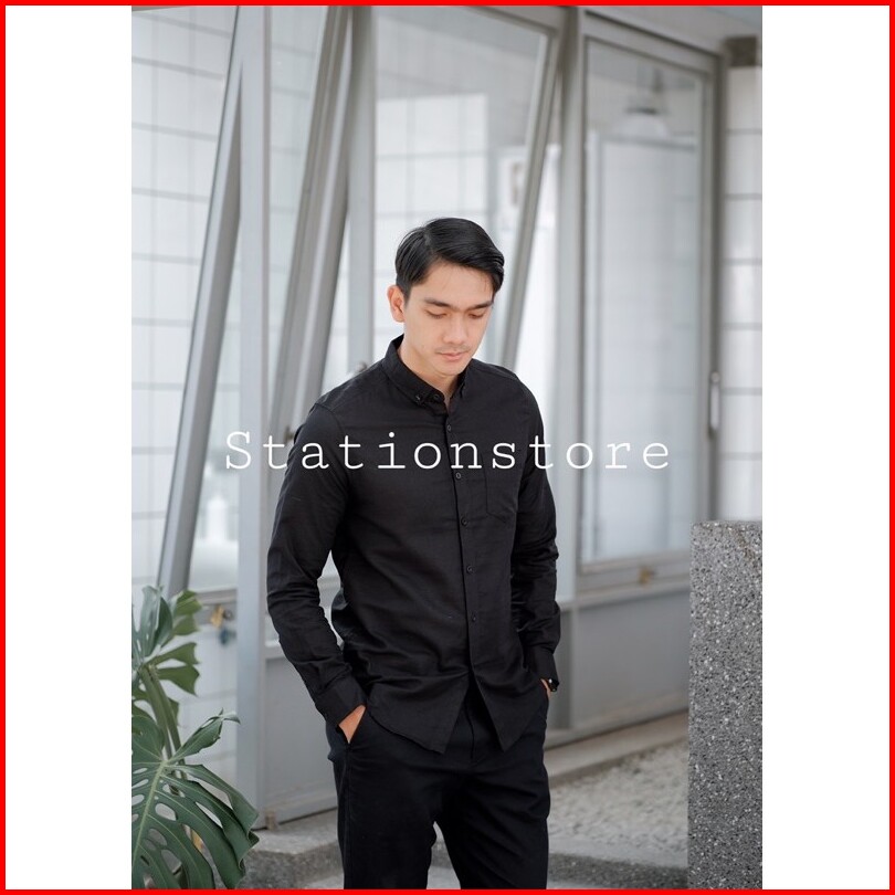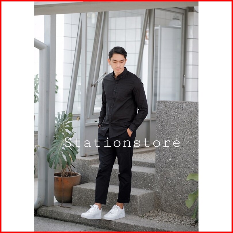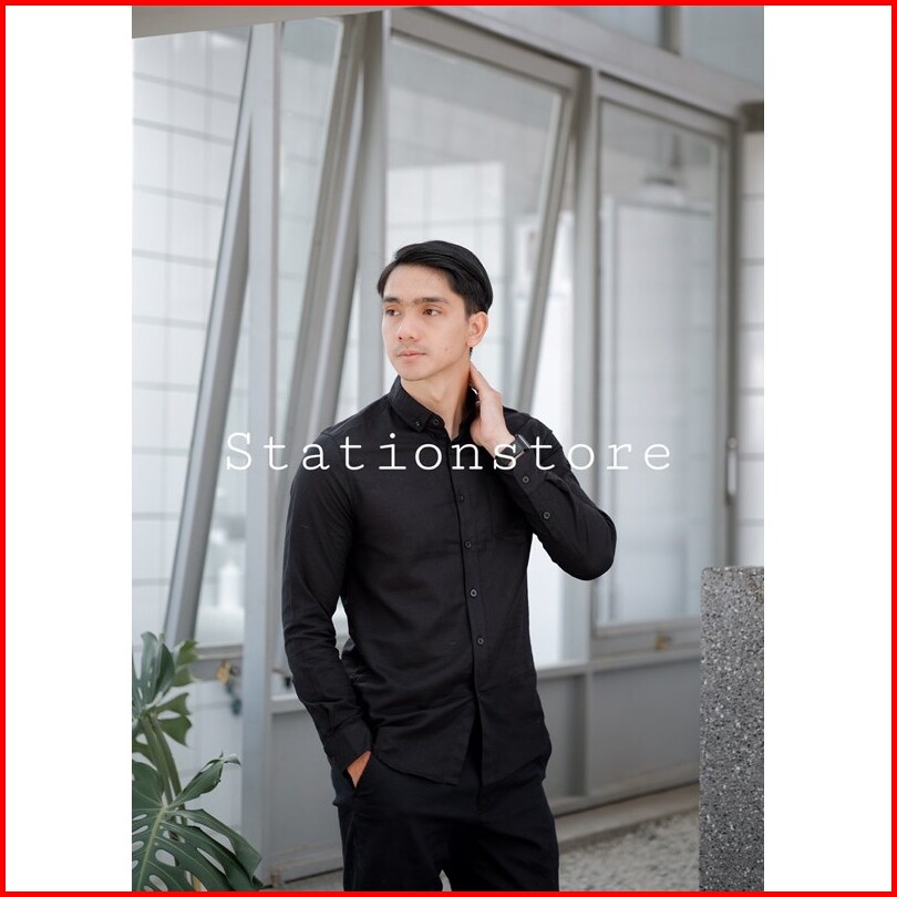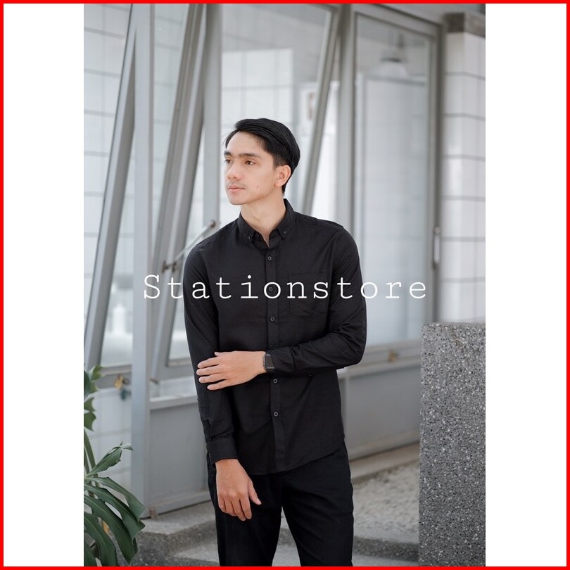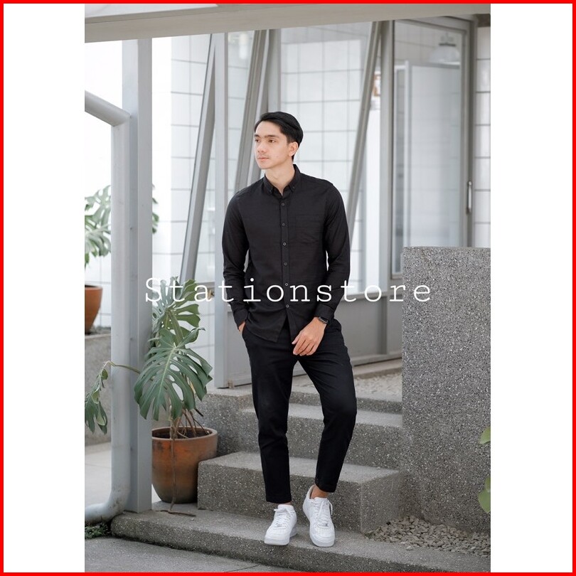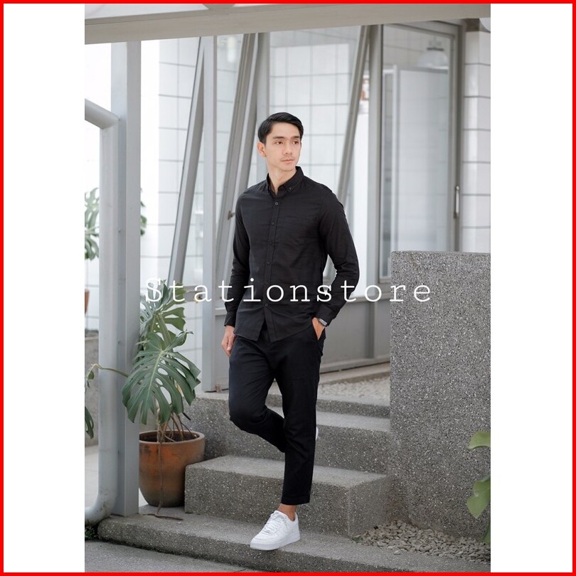 Kemeja Polos Pria Hitam Lengan Panjang Hem Cowo Kantor Formal Kasual