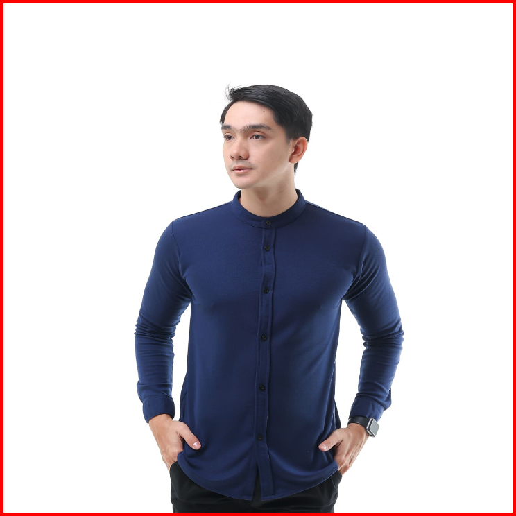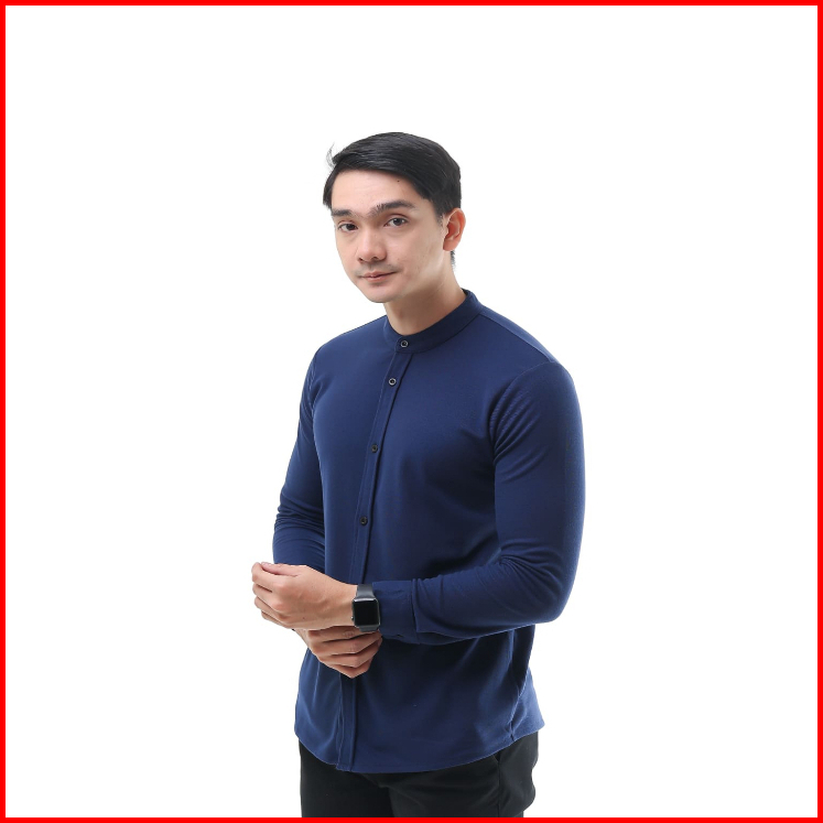 Stylelaki Lapique - Kemeja Navy Pria Casual Lengan Panjang Slim Fit Anti Kusut Nyaman Dan Lembut