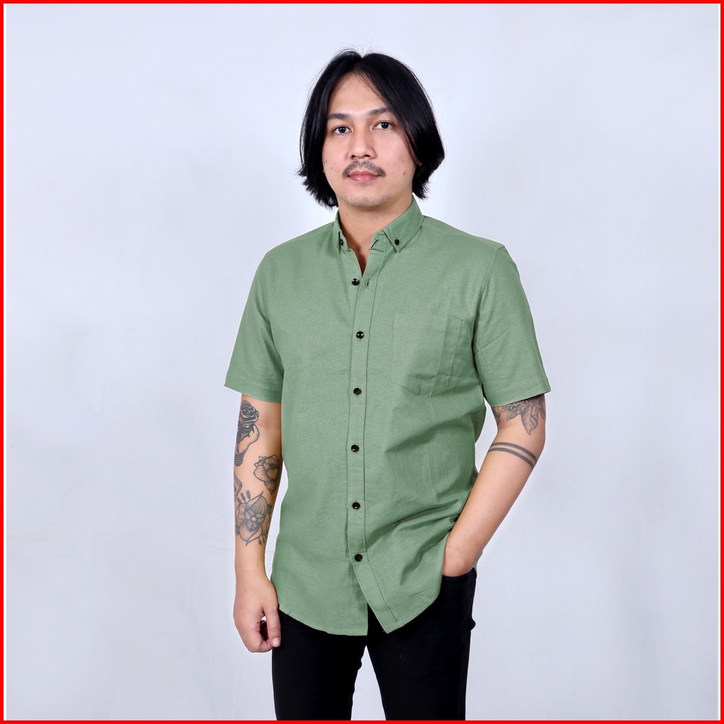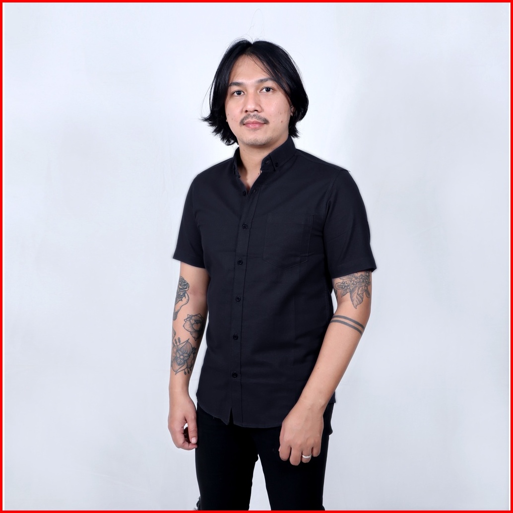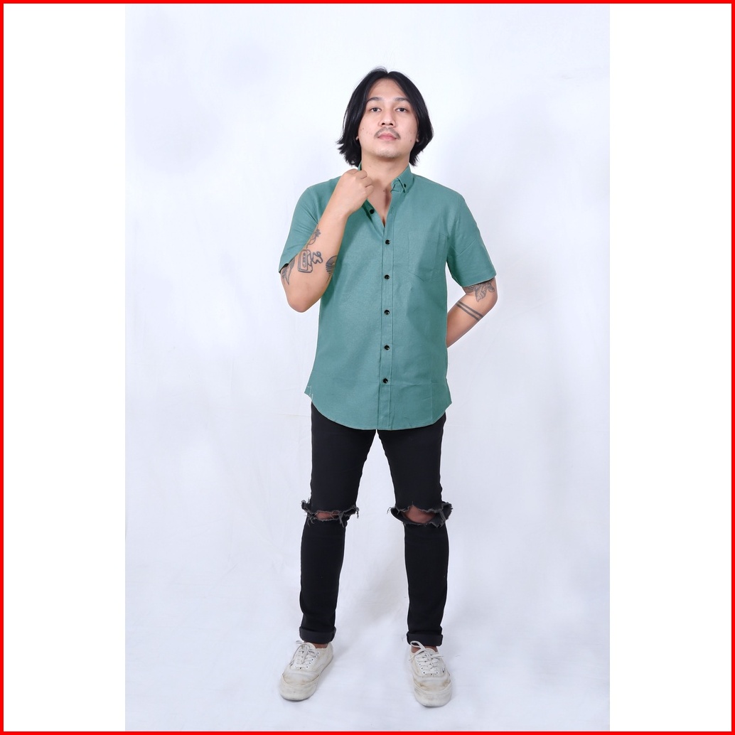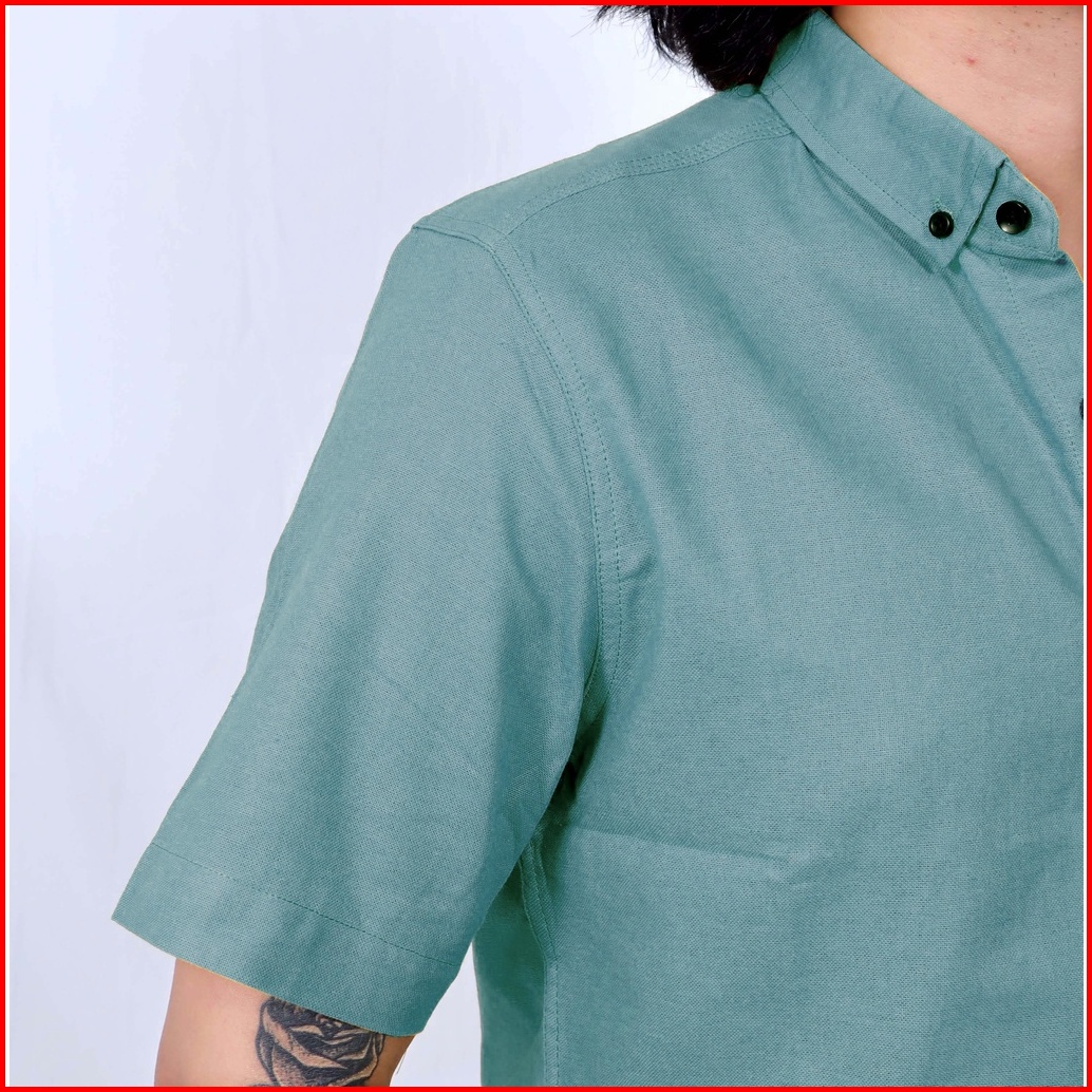 Kemeja Lengan Pendek Polos Slimfit Pria Biru Wardah