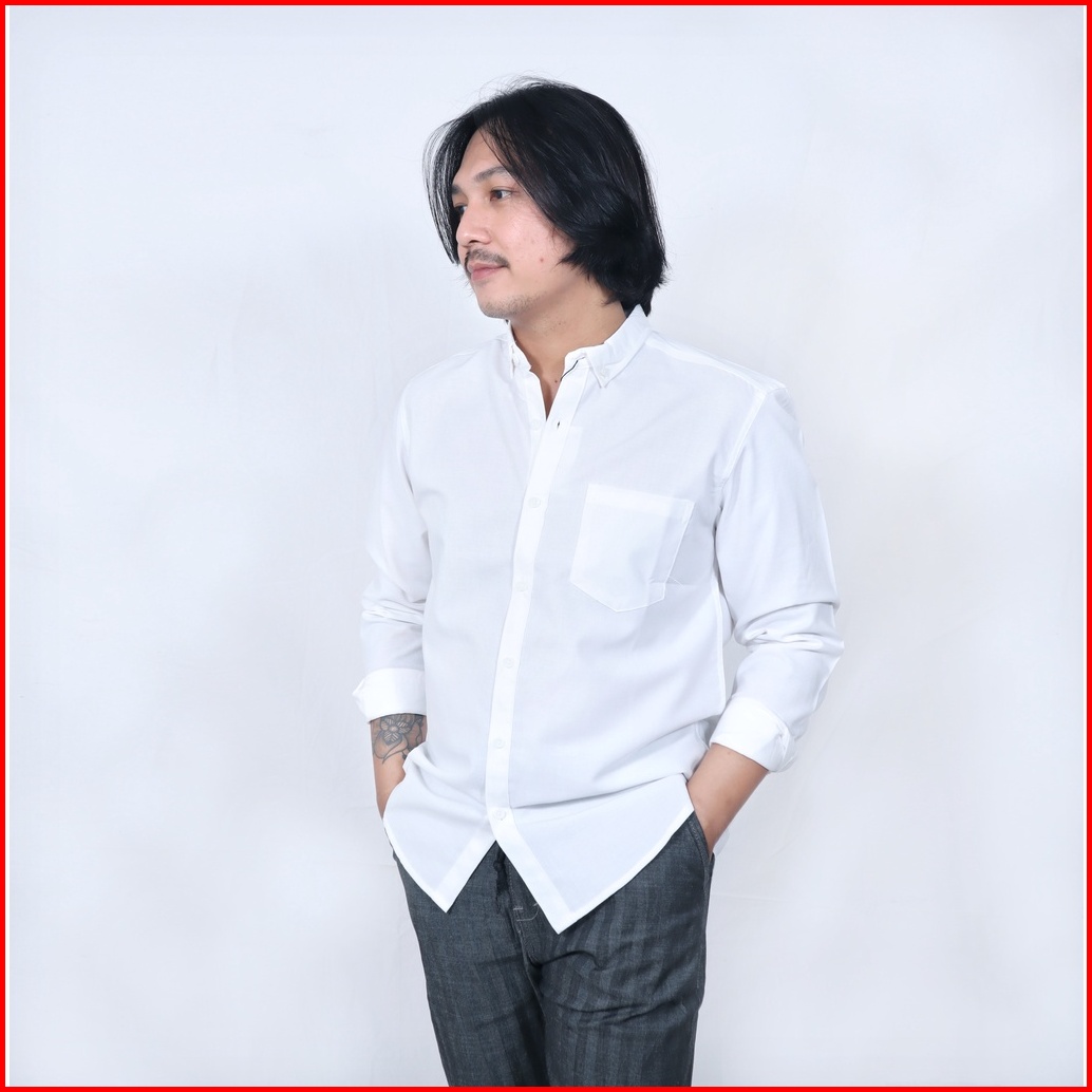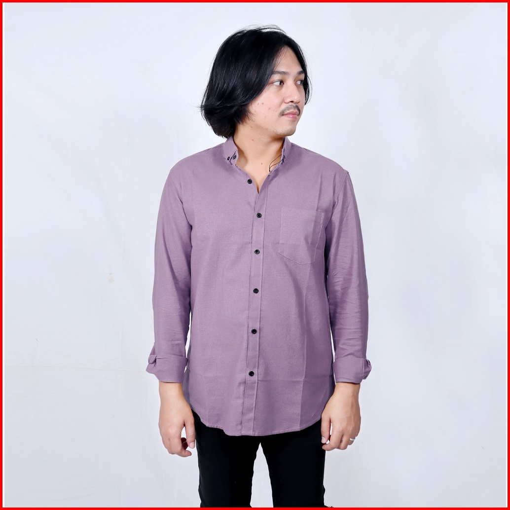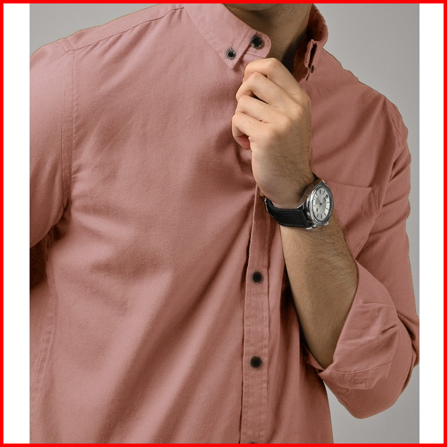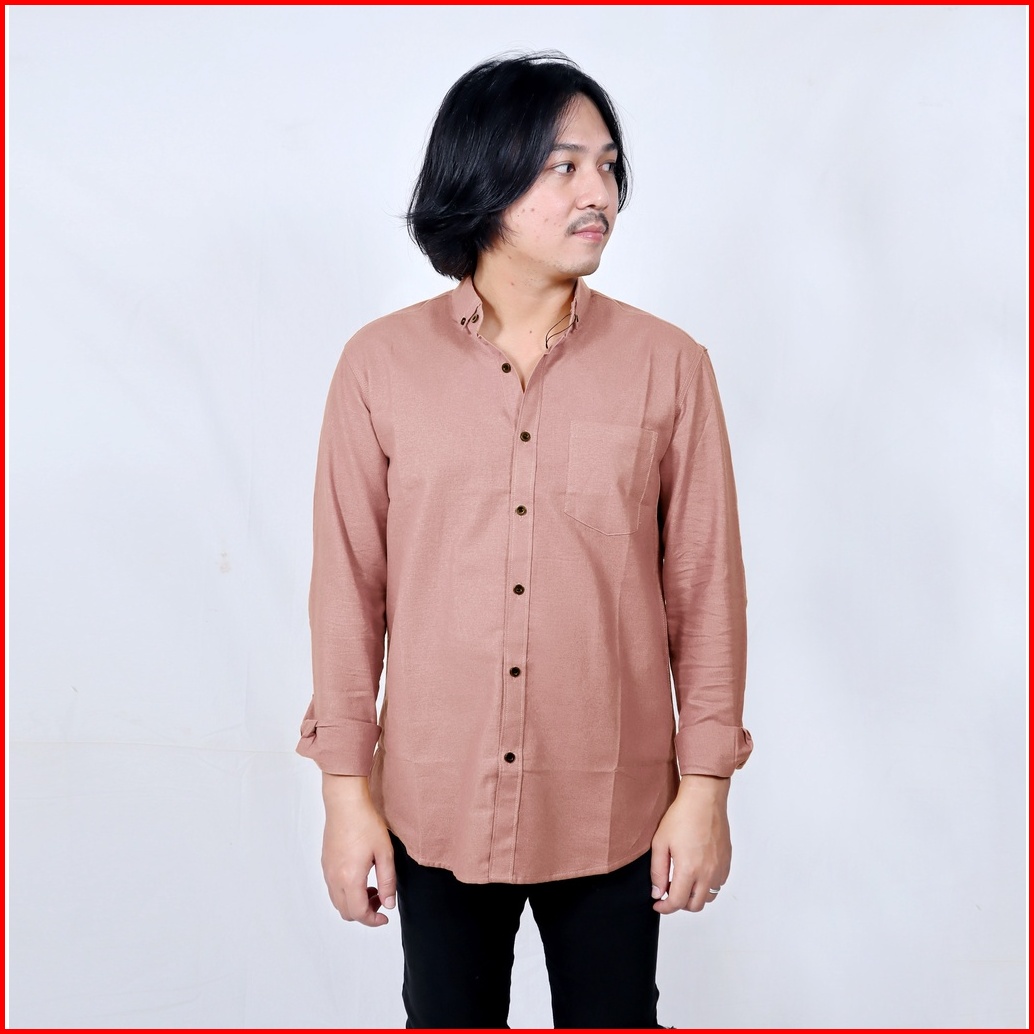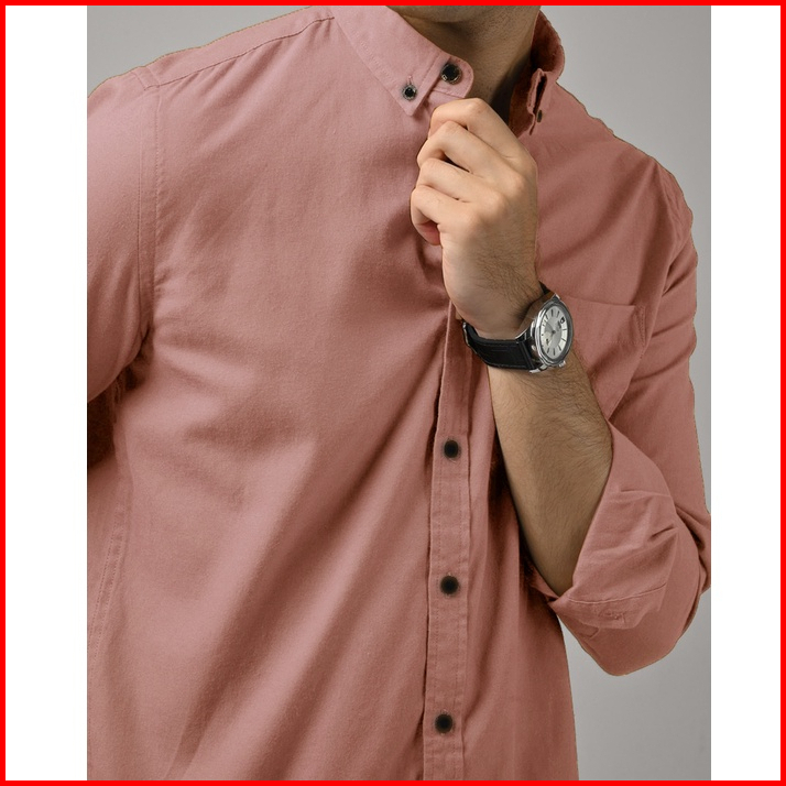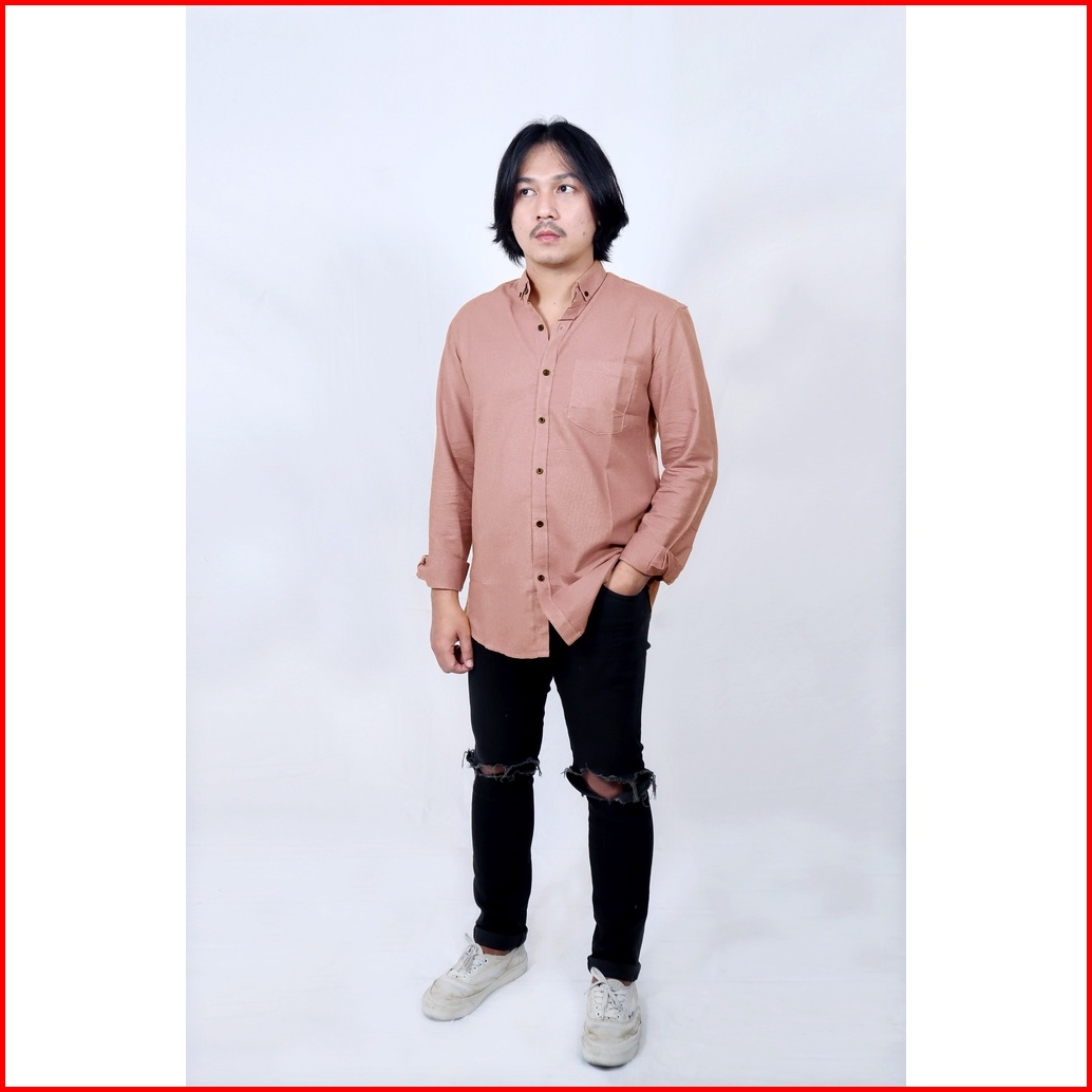Kemeja Pria Lengan Panjang Polos Basic Casual Slim Fit Peach