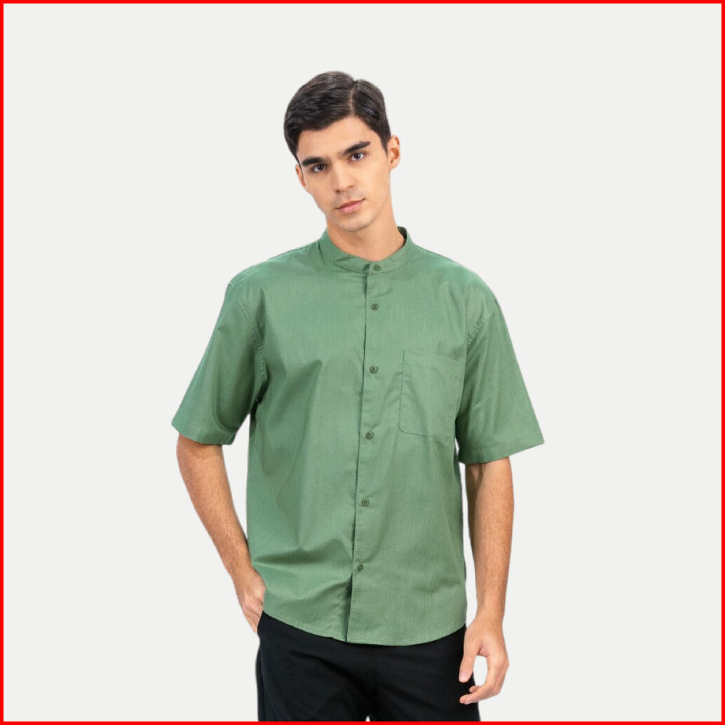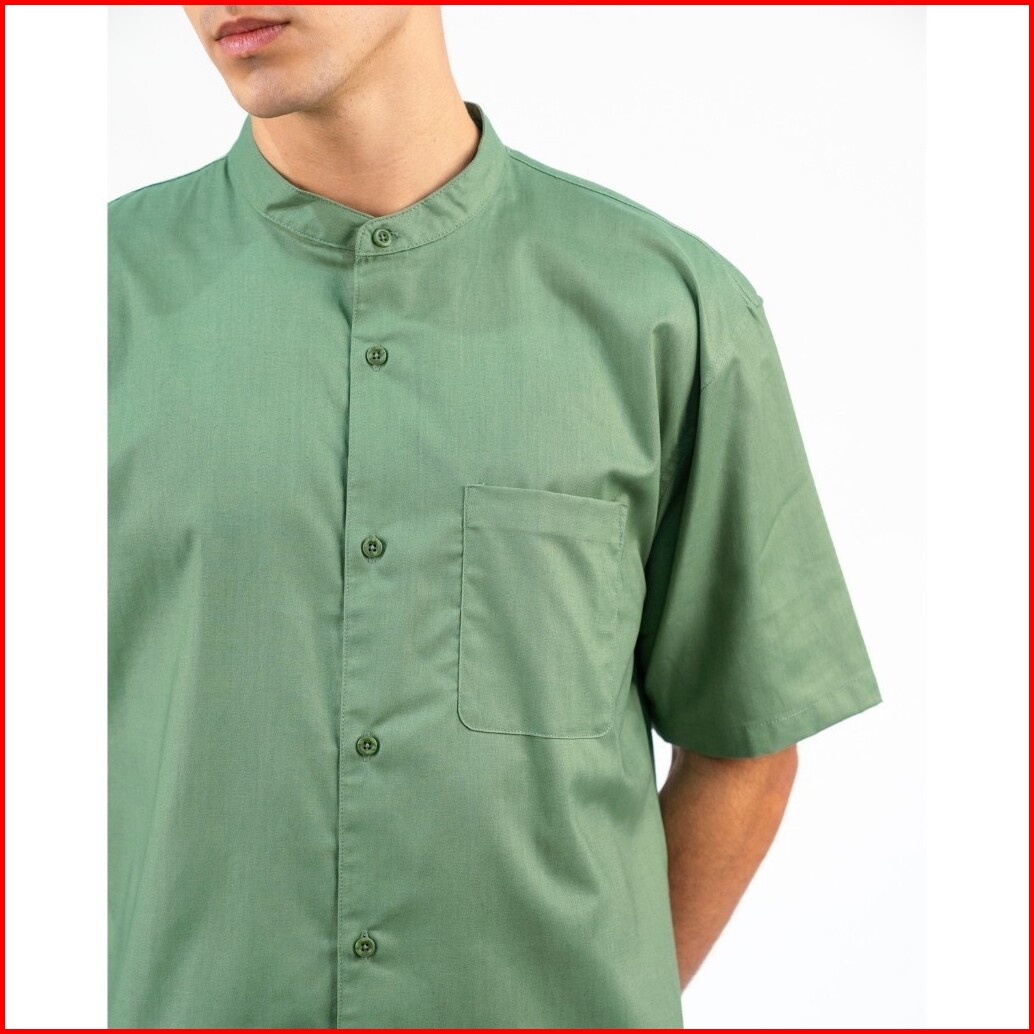 Erigo Shanghai Short Sleeve Basic Farhan Sage Green - Kemeja Koko Lengan Pendek Unisex